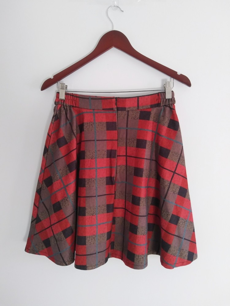 Hot Plaid Swirl Circle Skater Skirt Women Medium Red