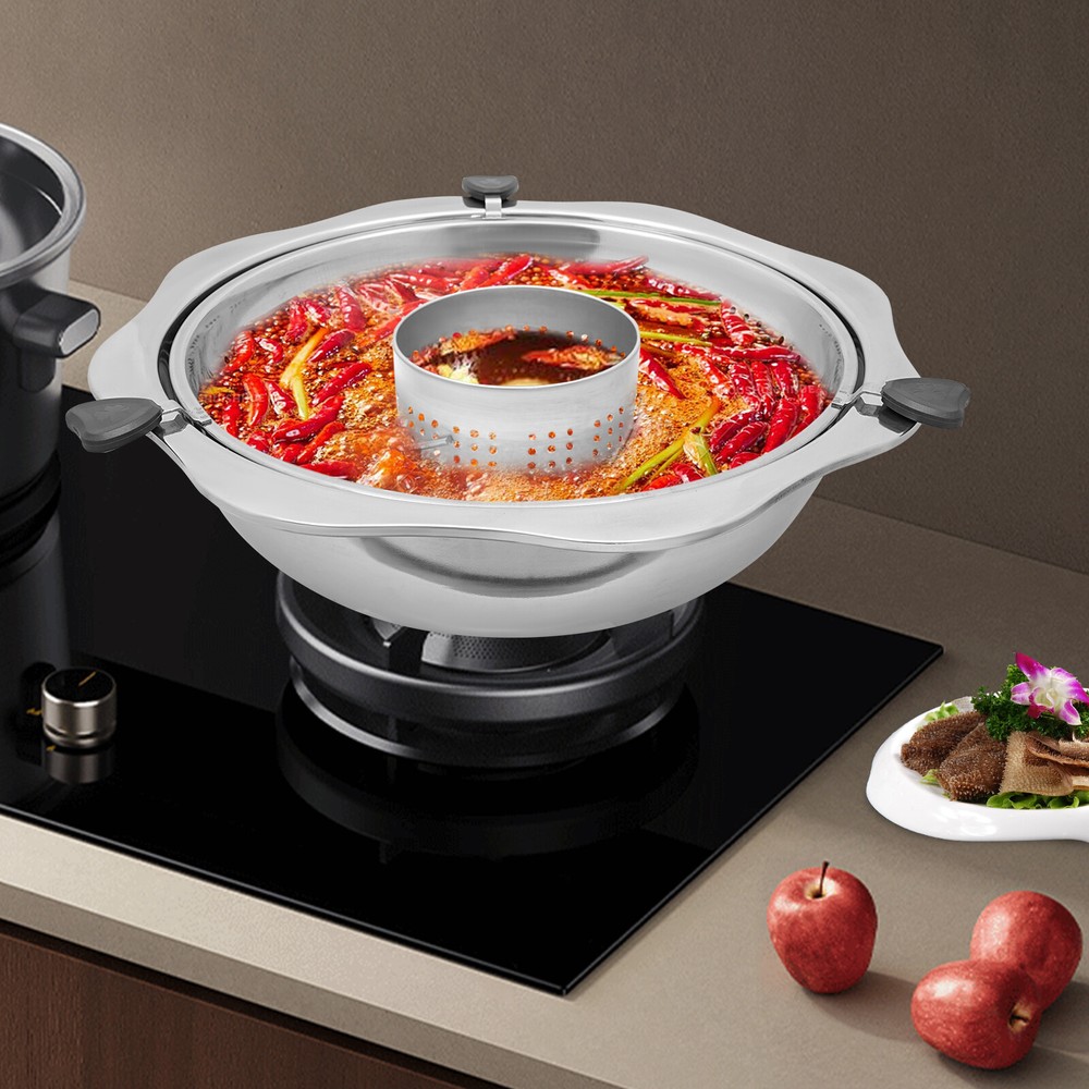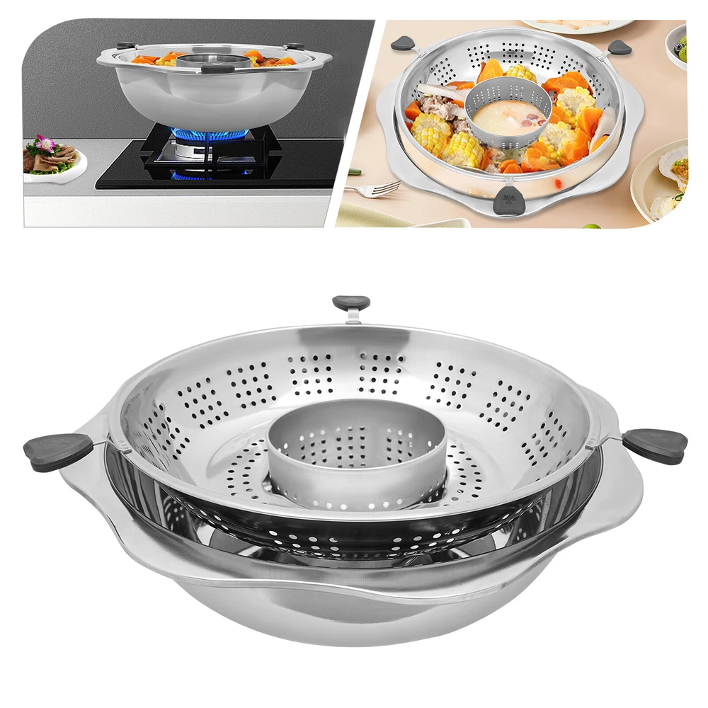 Specification Material: Stainless Steel, Plastic Color: Silvery Style: Chinese Style Shape: Round Process: Welding, Polishing Mount Type: Tabletop, Cooktop Assembly Required: No Pot Mouth Diameter: 42.4cm/16.7in Filter Grid Diameter: 36cm/14in Pot Bottom Diameter: 22.6cm/8.9in Pot Thickness: 0.5mm/0.02in Pot Height: 11cm/4.3in Applicable People: 8-12 Is Dishwasher Safe: No Package Size: 45*45*12cm/17.7*17.7*4.7 in Net Weight: 1.54kg/3.4 lbs Gross Weight: 1.6kg/3.5 lbs Package Included 1* Hotpot Hot Pot Lifting Two Grid Yin Yang Stainless Steel Fondue With Divider 45*45*12cm Description Are you looking for a practical, yet affordable hot pot? Look at our hot pot. This hot pot is made of safe and durable stainless steel and comes with a unique lifting function and large capacity. It is suitable for various stoves and can be used anywhere. We sincerely invite you to experience its endless charm together and embark on a journey of delicious food! Key Features Sturdy and Durable: Made of high-quality stainless steel after polishing treatment, it has excellent heat resistance and corrosion resistance , to ensure that the hot pot is always sturdy and durable. Large Capacity: The 16.7" diameter of the pot makes it suitable for several people (8-12) such as family, friends, parties, and restaurants. Excellent Performance: You only need to rotate the filter grid with dense mesh to quickly lift it, separating the soup and food, making it easy for you to quickly find the food you want. The small filter in the middle can efficiently filter out peppers, chili peppers, and other seasonings to ensure the soup is clear. Fast Heating: The thickened pot body (0.5mm) and flat bottom of the pot allow for even heat distribution , dramatically shortening your cooking time and allowing you to enjoy fresh food instantly. Easy to Clean: Its smooth surface, simple structure, and removable design make after-meal cleanup easy and efficient. Ready to Use: Thanks to its integrated design, you can use this hot pot immediately when you receive it. Good Customer Service: We aim to provide quality products and services. If you have problems, please feel free to contact us. We will reply and solve the problem for you as soon as possible. Details Practical Handles: Three anti-scald plastic handles allow you to easily lift or move the filter grid, avoiding direct contact with the hot pot body and causing burns. Round Edges: The smooth, and burr-free edges make it not only more comfortable to use but also care for your skin. Curling Design: It adds a unique aesthetic and design sense to the hot pot. Welding Process: The small pot in the middle is firmly connected to the pot body through welding technology, so you don't have to worry about the seasoning leaking out of the filter. Widened Edges: It enhances the durability of the pot body while effectively preventing scalding. Application It is suitable for families, hot pot restaurants, restaurants, canteens, etc. You can also take it out for outings, picnics, and gatherings. It is compatible with various stoves, including gas stoves, induction cookers, ceramic stoves, and electric stoves. Specification Material: Stainless Steel, Plastic Color: Silvery Style: Chinese Style Shape: Round Process: Welding, Polishing Mount Type: Tabletop, Cooktop Assembly Required: No Pot Mouth Diameter: 42.4cm/16.7in Filter Grid Diameter: 36cm/14in Pot Bottom Diameter: 22.6cm/8.9in Pot Thickness: 0.5mm/0.02in Pot Height: 11cm/4.3in Applicable People: 8-12 Is Dishwasher Safe: No Package Size: 45*45*12cm/17.7*17.7*4.7 in Net Weight: 1.54kg/3.4 lbs Gross Weight: 1.6kg/3.5 lbs Package Included 1* Hotpot Note Before using it for the first time, please wash it with warm water with the appropriate amount of detergent using a soft cleaning cloth (not included), then rinse it off with clean water and wipe it dry before using. Please add the right amount of boiling water or water before use, dry burning is strictly prohibited, and the pot should not be too full of water, to avoid the boiling water overflowing out of the pot. Please note that there may be welding seams on the pot body , which is normal and will not affect the performance. Please allow the slight color difference caused by the shooting light and 1-3cm error due to manual measurement, and make sure you do not mind before you order. Payment Delivery details Terms of sales About us Contact us Payment We accept ebay payment 。 Fees such as import duties, taxes are not included in the item price or shipping costs. These charges are the buyer's responsibility. Delivery details Shipping: 2-9 working days to: USA Terms of sales We maintain high standards of excellence and strive for hundred percent customer satisfaction. Feedback is very important to us. We hope that you contact us immediately before you give neutral or negative feedback, so that we can address your concerns. It is impossible to address issues if we do not know about them! About us Your satis faction is our ultimate goal. We work hard to earn your trust and future business. Our certified technicians have tested each item before shipping. The unit comes with 1 year limited warranty on all manufacturing defects. a) If you receive a defective item, you may return it or ask for a discount. Please contact us within 14 days after you receive the package. b) What you returned must be intact and in its original packaging as re? u. Customer is responsible for shipping costs of the returned item. c) We will cover the cost of shipping back t with the shipping rate indicated in the registration page. We will send you a new unit or refund the full payment you paid. Thank you. Contact us Business Hour Business Hour: Monday To Friday: 8:30 AM to 5:00 PM (Beijing China time) Due to time zones, our reply to your questions may not be immediately. But within above working time, we will reply your email within 24 hours. If it's non-workdays, please kindly be patient and wait till Monday. Please contact
