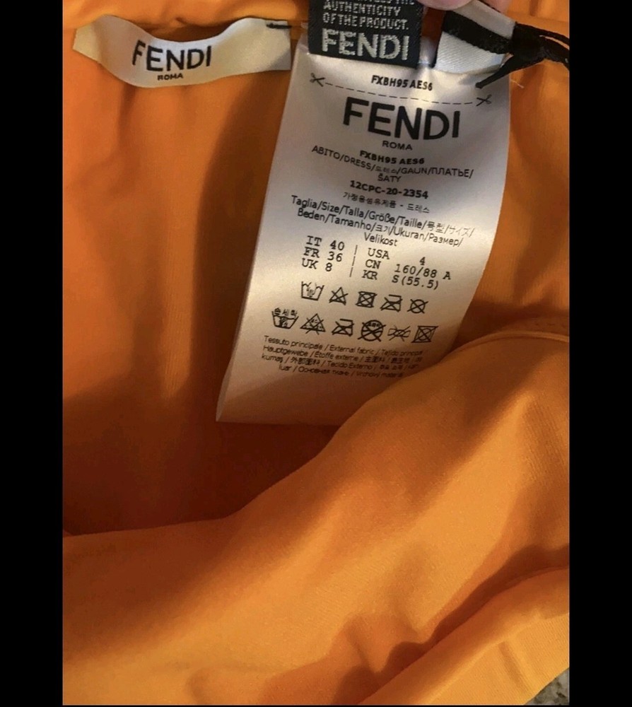 The authentic Fendi bikini is a stylish and high-quality piece of swimwear designed for women. This bikini top in vibrant orange color features adjustable straps and a stretchy material for a comfortable fit. Perfect for a beach day or poolside lounging, this bikini exudes a colorful and playful theme, making it a fashionable choice for your next summer vacation.