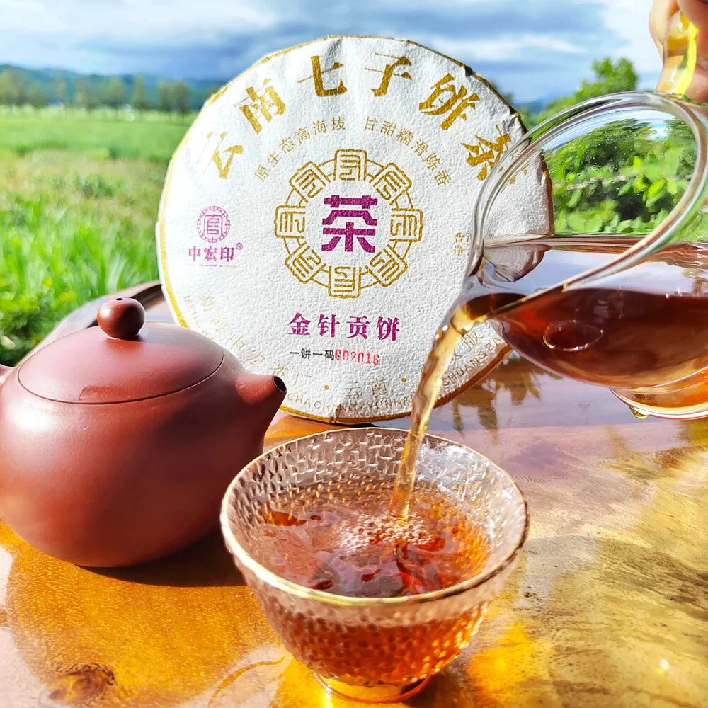 Hot Selling Qizi Bing Golden Needle Royal Cake 357g Shu Tea Cake Fermented Puerh