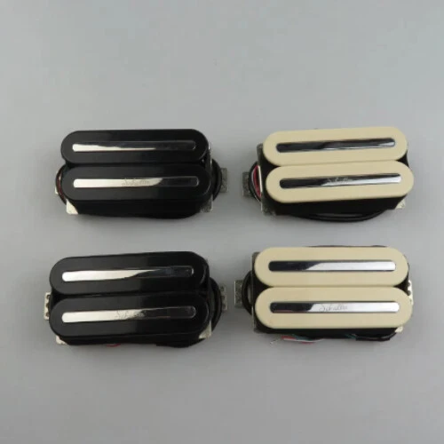 Model: Closed Yoke Neck Pickups 7.16K Bridge Pickups : DC-resistance/ kOhm: 3,6 / 14,4K Surface: Plain Measurements l x w x h (mm): 68x37x22 Weight g/item: 183 Humbucker with 3 strong ceramic magnets and 2 solid iron blades as pole pieces, hence no "dead spot" in the magnetic pick-up of the strings. Super high output and powerful, midrangy sound. Perfect for ultra heavy sounds with fat distortion. Very consistent pick-up even with extreme bendings. 4-conductor lead for series, parallel and single-coil wiring options. All pickups are manufactured to the highest quality requirements and the most demanding quality standards: In order to avoid deviations, the number of coil windings are controlled with utmost care. For a constant sound quality and reduced microphonics, all relevant metal parts are made of German silver. All humbuckers have the international standard dimensions, allowing them to fit into all conventional pickup rings. To avoid microphonic problems, all coils are vacuum-potted by means of a unique method. The colour selection includes black, creme and white plus the black/creme zebra combination. To provide the largest possible range of sounds, all humbuckers have 4-conductor leads. This allows the following wiring options: series, parallel, single coil, and out of phase. humbuckers are easily installed into any guitar where humbuckers were already mounted or planned. The mounting lug on the pickup baseplate has 3 instead of 2 screwholes and is thus universally usable with all common types. Furthermore, the use of the pickup frame with its 4-point fixation reliably prevents a tilting of the pickup in the frame. Installing an Hot Stuff Humbucker changes your guitar's DNA. No matter how dangerous your stock pickup claims to sound, the Hot Stuff Humbucker will transform your guitar into the mean, heavy-sounding beast you always knew it could be. The Hot Stuff Humbucker power comes from the combination of specially overwound coils, three large ceramic magnets, and its striking, oversized metal oxide pole pieces. These unique pole pieces expand the overall magnetic field and widen the frequency spectrum, which is why every note played through an Hot Stuff Humbucker sounds so rich and massive. The ceramic magnets add depth and clarity while hence no "dead spot" in the magnetic pick-up of the