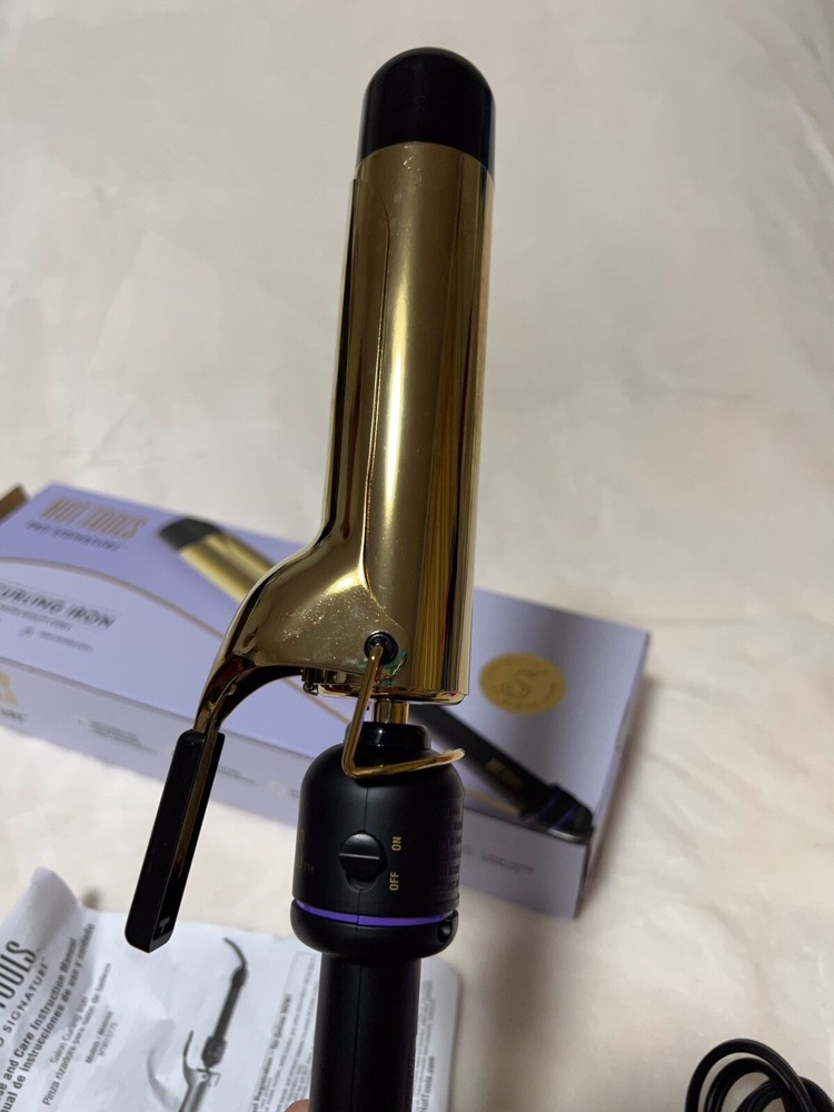Hot Tools Professional Signature Series 1 1/2" Gold Curling Iron Wand. Used , tested still in good condition. Item: B08