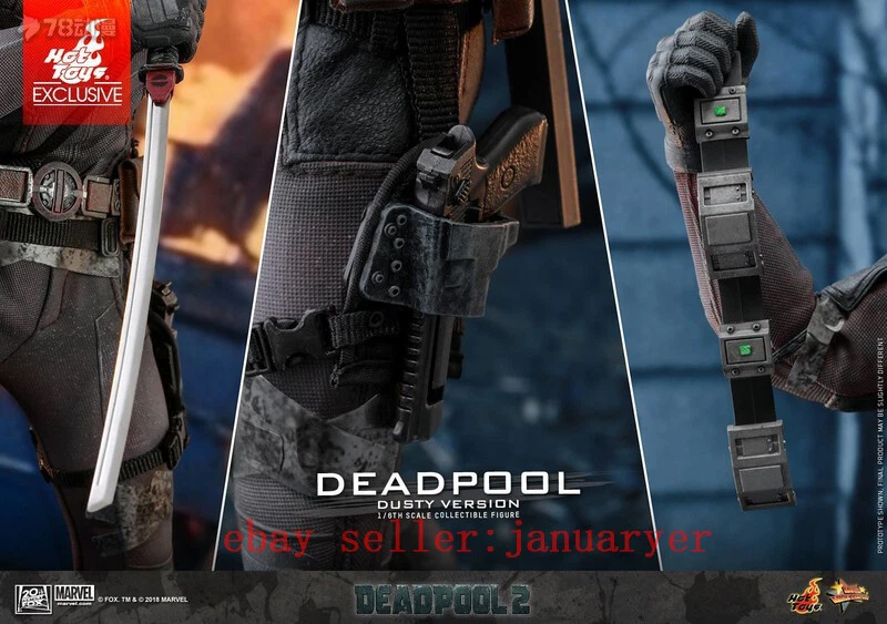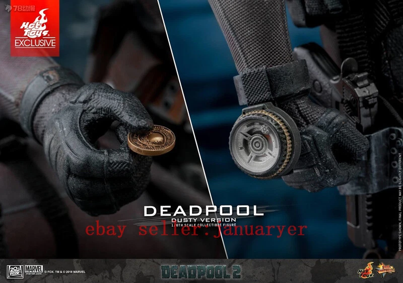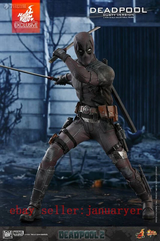 Hot toys Deadpool 2 dusty version it is used in bought it used but it's in good condition the hand pegs get stuck sometimes but there fine everything it comes with is still in box I only had it for display in a glass case for a couple months never posed it more than 2 or 3 times the display stand is the only thing that is iffy the stand is fine but the stick is very loose so when bending it around it does not come with original brown shipper box other then that the item is ready to ship !!