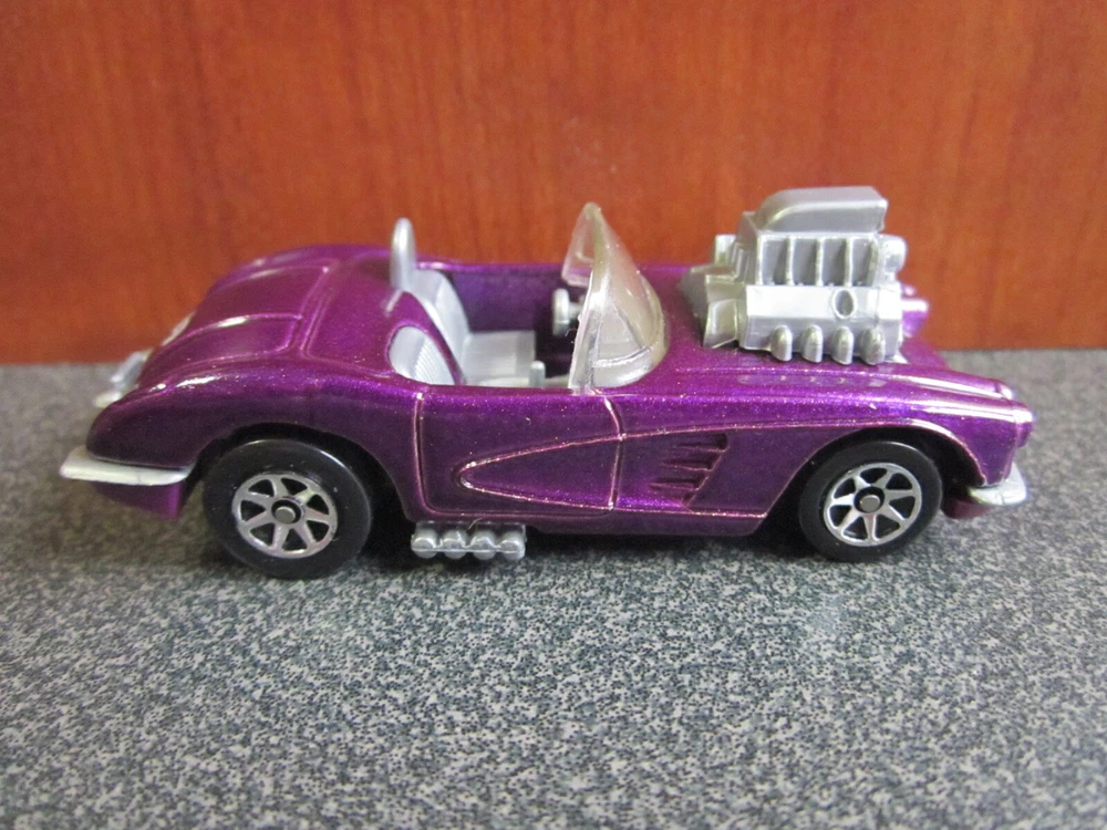 NOTE: We offer combined shipping discounts where possible. If you are purchasing more than one of our items, please add them to your Shopping Cart and click the "Request Total" button. We will send you an invoice reflecting the new total with the combined shipping cost. For sale is a 1:64 scale Hot Wheels 1958 Chevrolet Corvette convertible with a gray interior and blown engine. Although the car is loose (no package), it has been stored in an acrylic case since purchase and is in very nice condition. The photos provided above show the actual vehicle you will receive.
