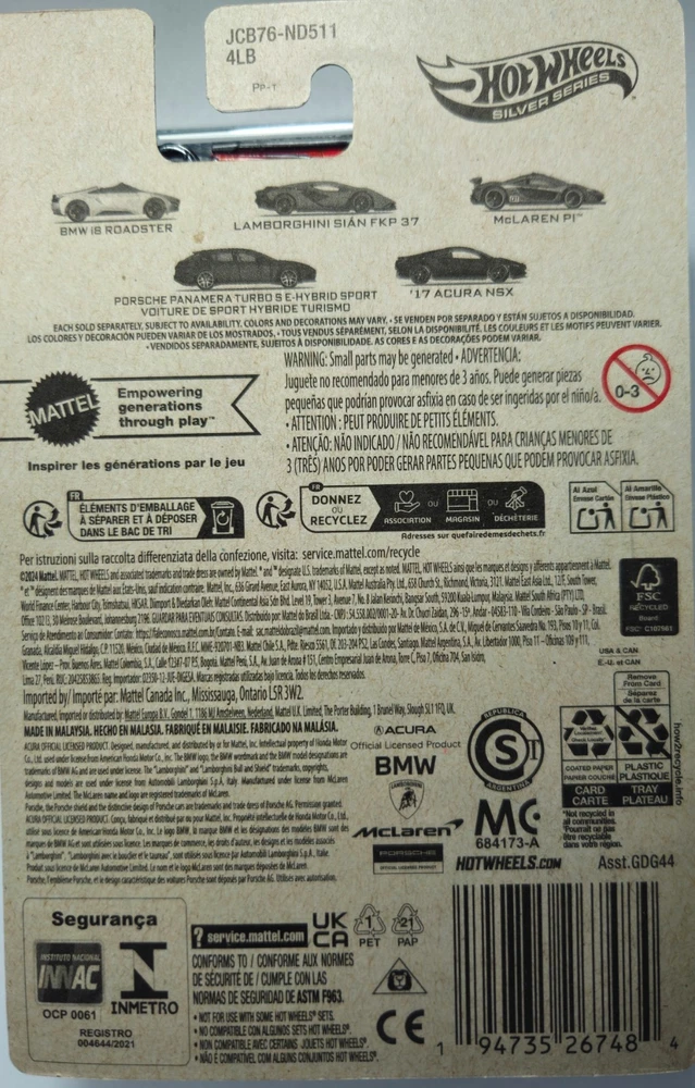 🏎️ Hot Wheels 2025 “Silver Series” Hybrid Speed Complete Set #1–5 GDG44 – Free AUS Shipping Condition: Brand New – Factory Sealed Series: Hot Wheels Silver Series – Hybrid Speed Year: 2025 Set Includes (5 Cars Total): BMW i8 Roadster Lamborghini Sián FKP 37 McLaren P1 Porsche Panamera Turbo S E-Hybrid Sport Turismo ’17 Acura NSX Highlights: 🔥 Complete 5-car set from the 2025 Silver Series Hybrid Speed line 🆕 All cars are brand new , sealed , and in excellent condition 💎 Perfect for collectors or display – highly detailed designs 📦 FREE tracked shipping Australia-wide! Why Collect This Set: This exclusive 2025 Silver Series Hybrid Speed lineup celebrates the power of hybrid supercars with detailed castings and themed cards. It’s a must-have for Hot Wheels collectors and car enthusiasts alike – limited release and highly collectible! Shipping Details: Ships FREE anywhere in Australia Fast dispatch within 1 business day of cleared payment