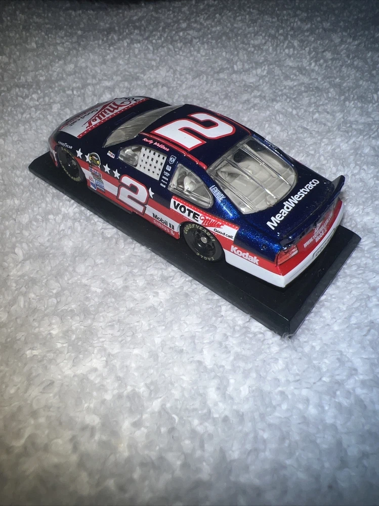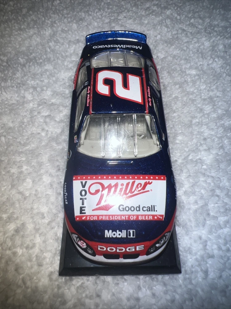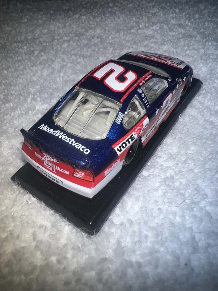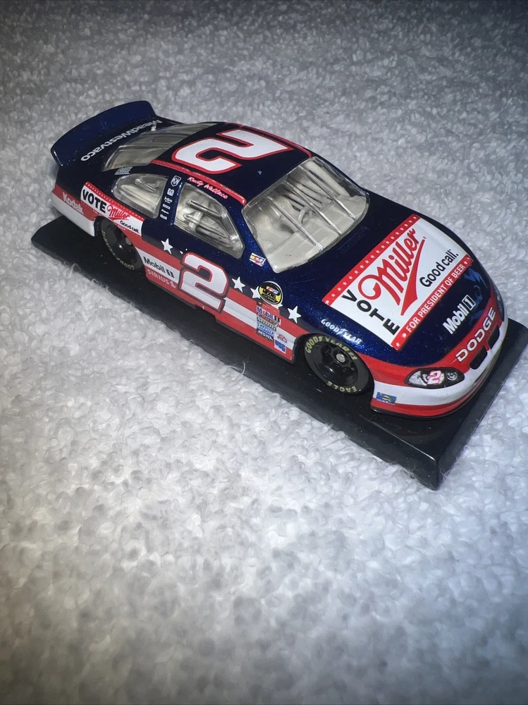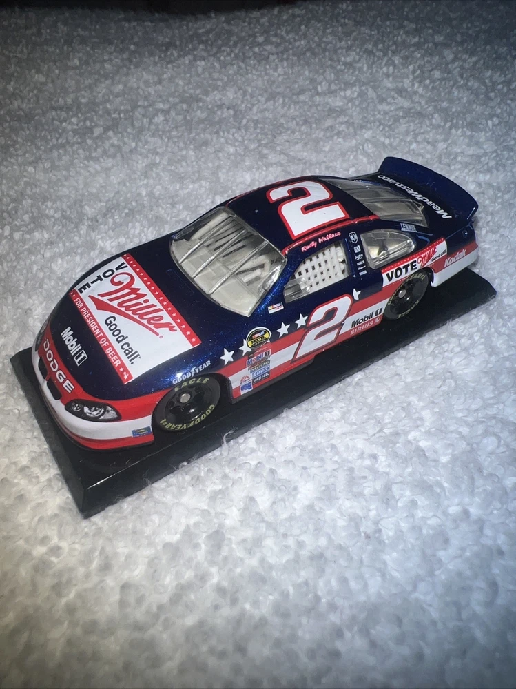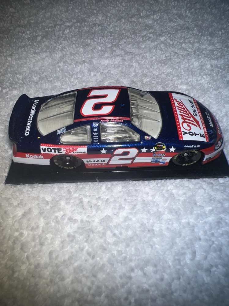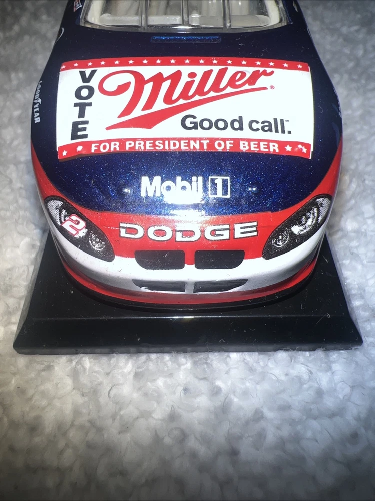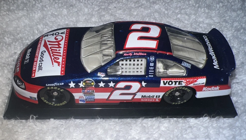 This Hot Wheels 1:24 scale Action brand NASCAR car is a must-have for any Rusty Wallace fan. The car features a colorful design with the #2 Miller Vote Miller For President of Beers branding. It's perfect for adding to your collection or displaying as a unique piece of fan memorabilia. The car is in great shape, ready to be enjoyed by its new owner. Whether you're a fan of NASCAR, auto racing, or just a fan of Rusty Wallace, this Hot Wheels car is a great addition to any collection. This car is in Excellent Condition. (See pics)… & it will ship FAST!