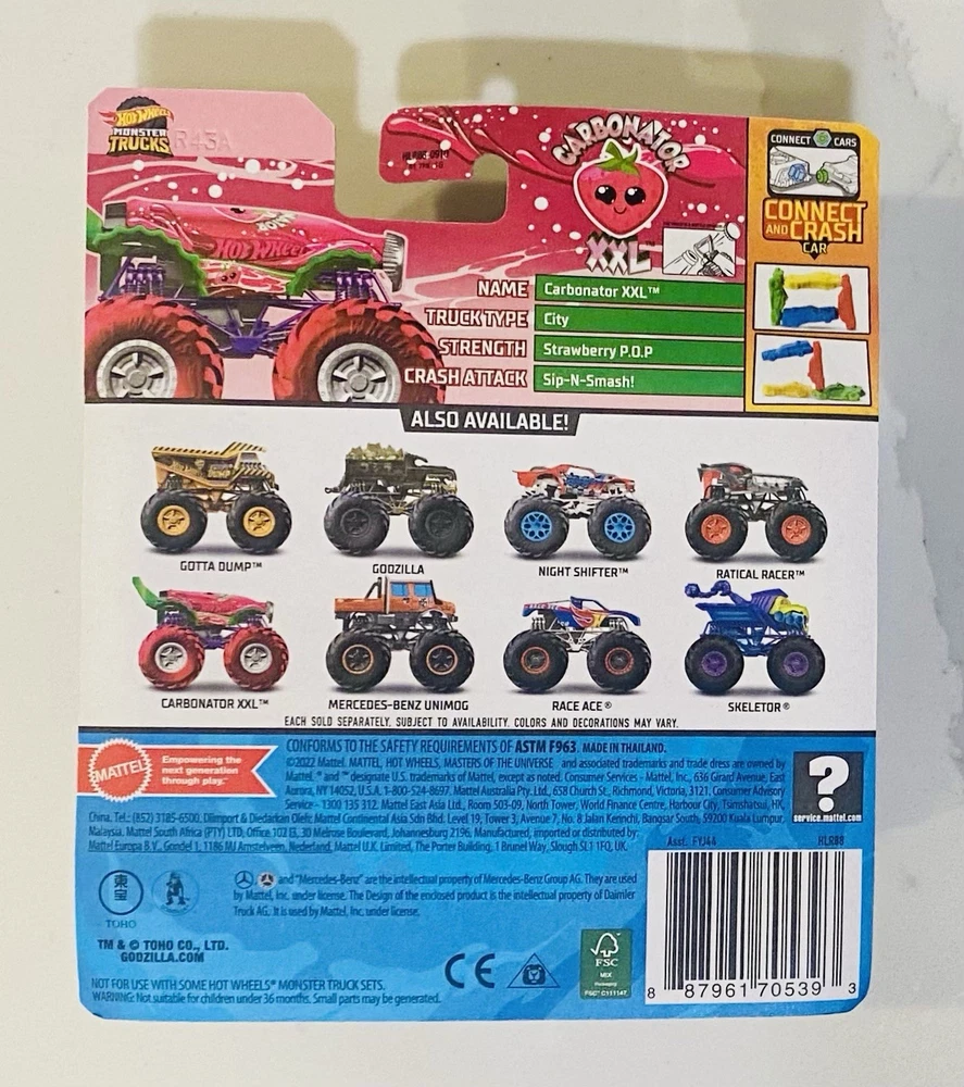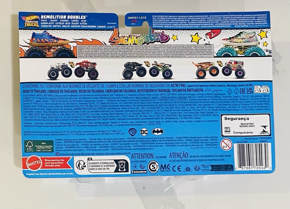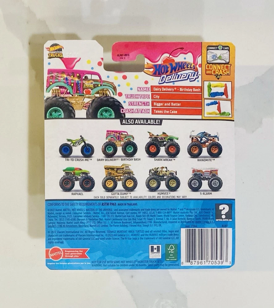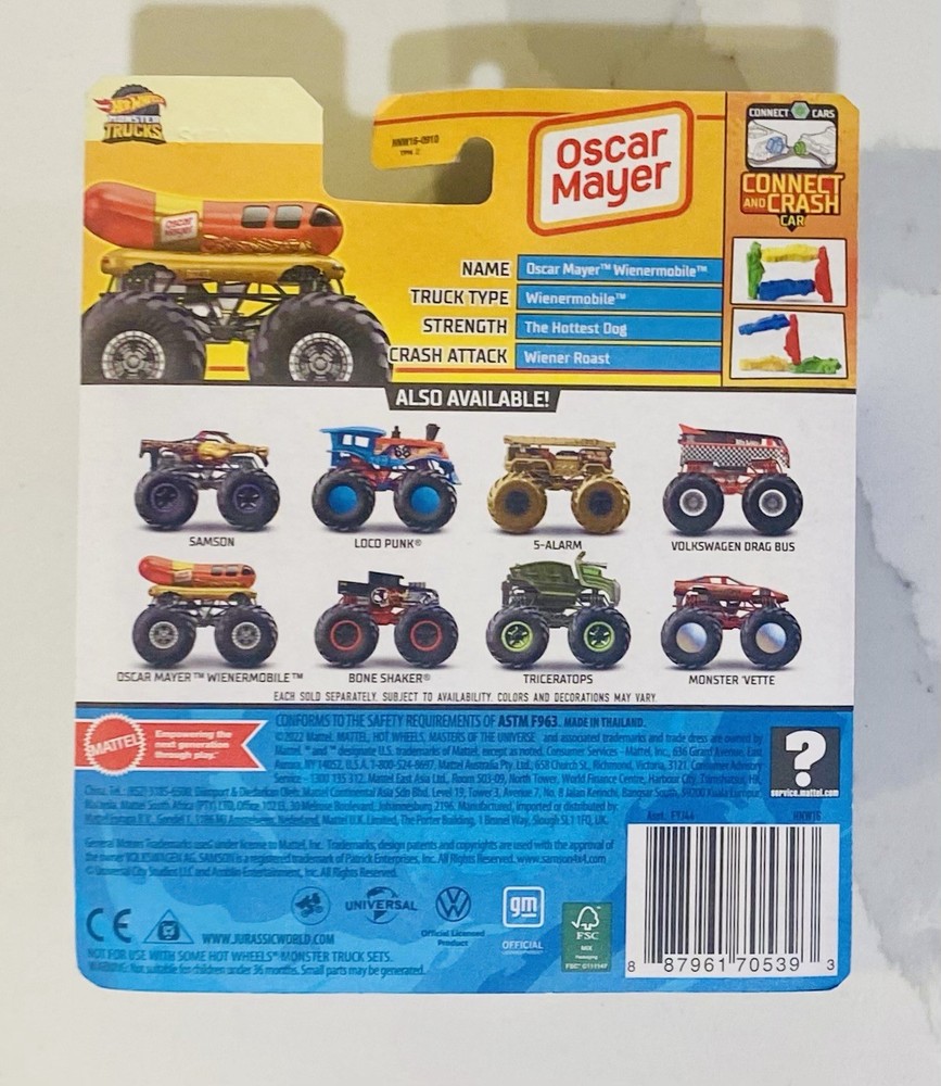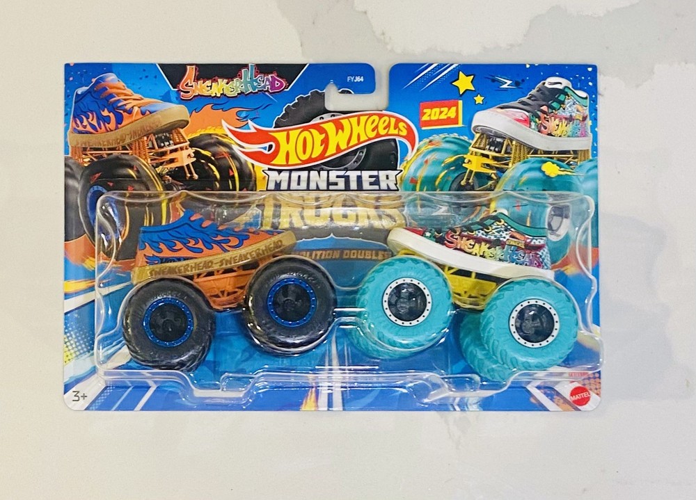 New! Sealed! Set of three Hot Wheels Monster Truck vehicles from the Snack Pack series & SNEAKERHEAD VS SNEAKERHEAD 1:64 Demolition Doubles Hot Wheels Monster Truck 2-Pack. This set includes: 2024 Hot Wheels Monster Trucks Hot WheelsDelivery Pink Snack Pack 2023 STRAWBERRY CARBONATOR Hot Wheels Monster Truck 2023 Hot Wheels Monster Trucks OSCAR MAYER WIENERMOBILE Hot Dog 4X4 Truck. Hot Wheels Monster Truck 2-Pack SNEAKER HEAD 1:64 Demolition Doubles Items pictured are the ones that will be delivered. Please refer to photos for more details.