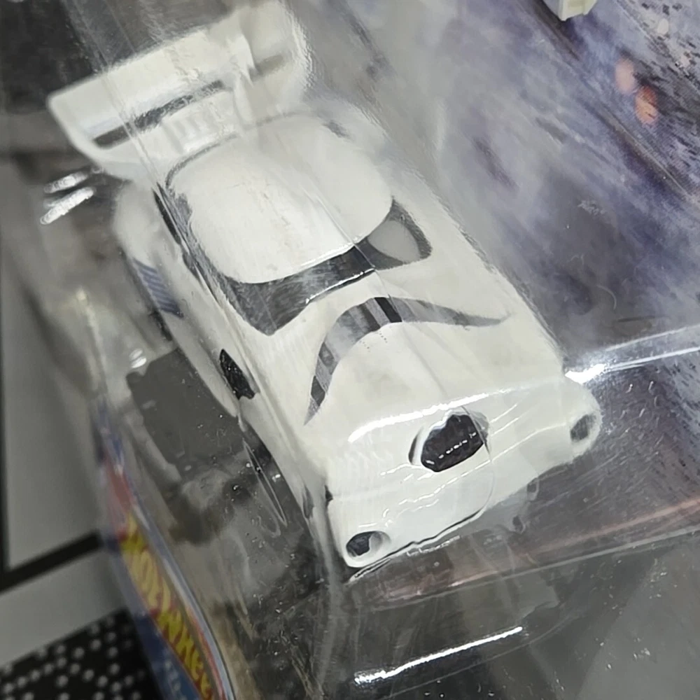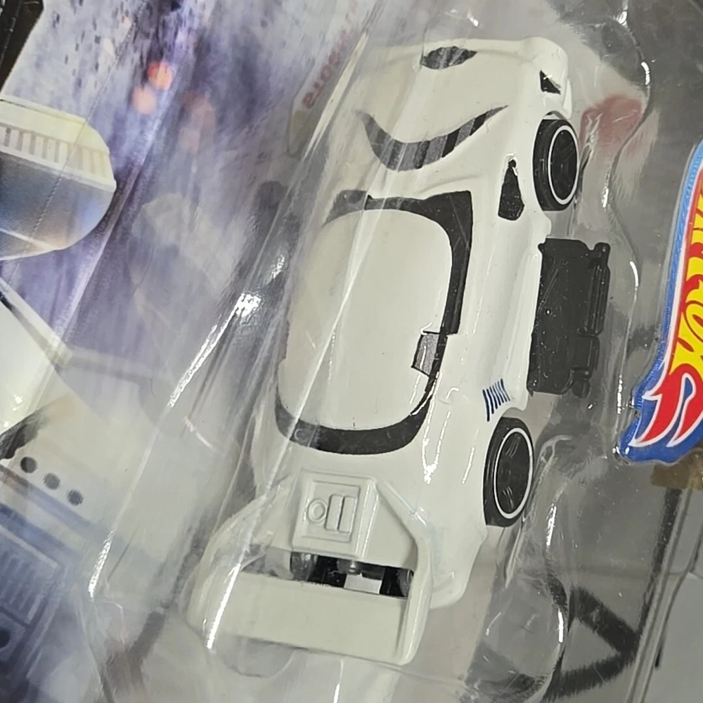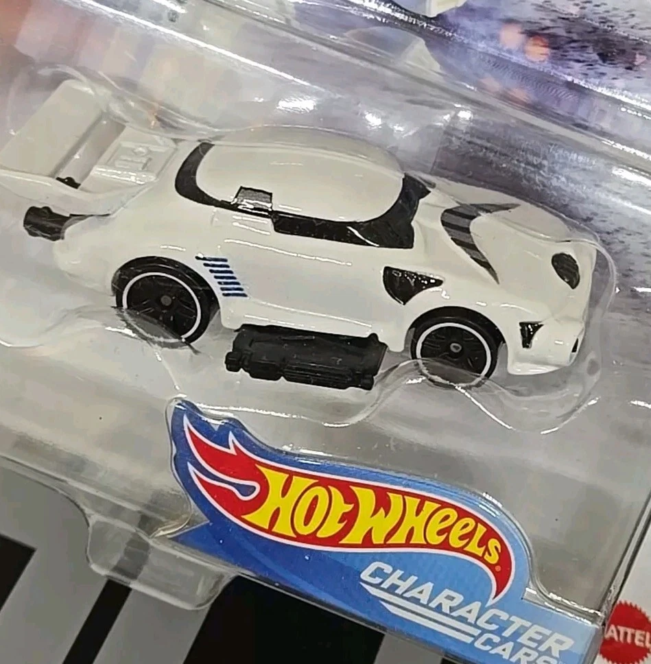 The Hot Wheels Stormtrooper Vehicle is a die-cast toy car featuring a design inspired by the Empire Strikes Back theme from Star Wars. The vehicle is white in color and is part of the Hot Wheels brand's collection, specifically appealing to fans of the iconic Star Wars franchise. With a recommended age range of 3 years and older, this collectible toy is sure to delight both young fans and adult collectors with its unique Stormtrooper design and attention to detail. I have a total of 6 different Star Wars character vehicles. They may not be from the same movie tho. 1) THE MANDALORIAN 2)BO KATAN (2 AVAIL.) 3)CARA DUNE 4)LUKE SKYWALKER 5)BOBA FETT