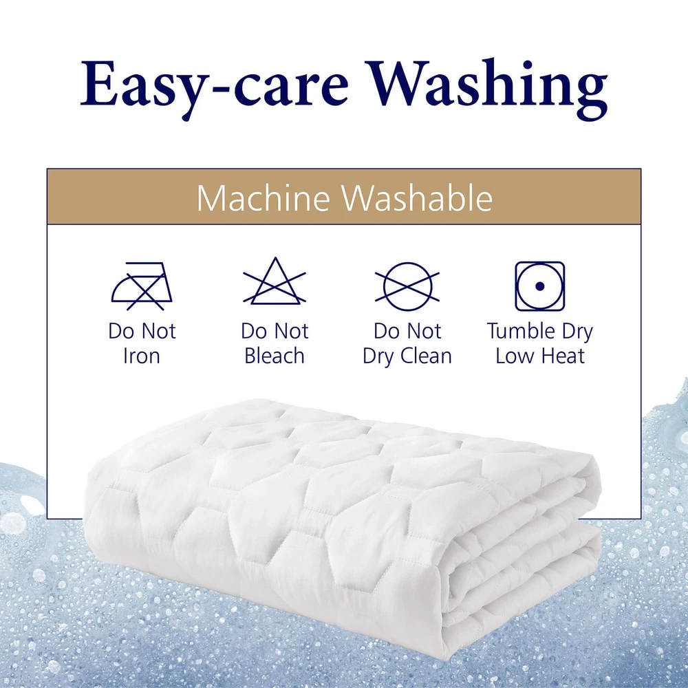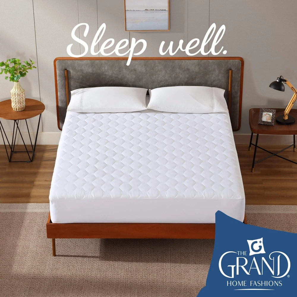Upgrade your sleep experience with our luxurious mattress pad. Crafted with premium materials, this pad adds an extra layer of plush comfort to your mattress, ensuring you wake up refreshed and rejuvenated every morning. The quilted top surface provides a cozy, cushioned feel, while the hypoallergenic fill prevents allergies and ensures a healthy sleeping environment. Designed to fit snugly on your mattress, this pad stays in place throughout the night, eliminating bunching or shifting. Whether you have a firm or soft mattress, this pad will enhance the overall comfort level, cradling your body in cloud-like softness. Easy to care for, simply machine wash and tumble dry for long-lasting freshness. Treat yourself to the restful slumber you deserve with our exceptional mattress pad. MATTRESS PROTECTOR: Mattress Pad will not only restore your mattress’ look to a beautiful appearance, but it will protect your current mattress from any further damage. By acting as a protective barrier, mattress pad helps shield your mattress from spills, stains, and general wear and tear, effectively prolonging its lifespan. SOFT & SMOOTH POLY-COTTON MATERIAL: mattress pad combines of the best materials for bedding; cotton and polyester. The Mattress pad has the softness and smoothness that polyester offers and the comfort and coolness is delivered by the high quality cotton we material. HYPOALLERGENIC: Made from high quality cotton and polyester has been designed from hypoallergenic materials to ensure a comfortable and easy sleep. DURABLE AND LONG LASTING: Mattress Cover is made from high quality material ensuring it will not fade or fall apart even after years of use. QUICK AND EASY TO FIT ON BED: Simply slip our mattress pad over your mattress, secure it with the elasticized skirt, and enjoy instant comfort and protection.
