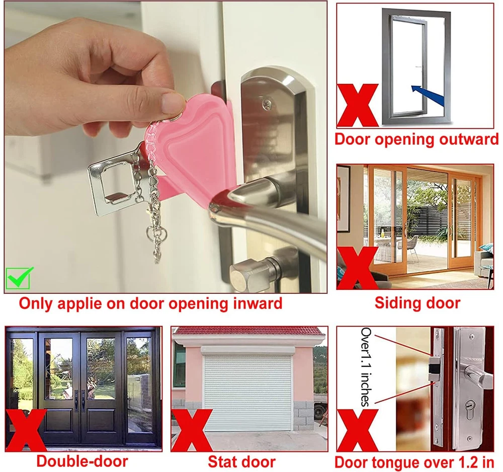 The door stopper alarm need battery-operated that itโs requires 1 X 9V battery (package not included) Package: 1X Door Stopper Alarm (without battery), 1 X portable door lock. Why do we need to have Dual Protection Security Door Kit? Are you worried about the insecurity in a hotel and fear of strangers opening your room? So, imagine, youโre alone at home or in a hotel or room or rentals, sometimes the door lock does not work efficiently. Don't worry, if you have Our Security Door Kit, it will prevent unauthorized entry, provide absolute security and privacy of your room and peace of mind in those situations. Notes: ๐1. Place it under the door, the gap between the bottom of the door and the floor should be 10MM(0.38 in) to 30MM(1.35 in). ๐2. Smooth floor can try to use H-type sensitivity, vibration-sensing alarm. ๐3. When the alarm sound gradually becomes smaller, it means to replace the new battery. ๐4. Turn off the power supply can be used as a doorstop. ๐5.Heavy Duty Travel Door Lock has two different sizes of locking holes: 0.78 inches fitting normal doors, 1.2 inches fitting doors with larger bolts, it might doesnโt work on all door, please chick out the size of your door before buy it(you can chick the size in the picture 2) ๐6.portable add lock can only be used for in-swinging hinged door Dual Protection 1:This portable door lock provides you with extra security and privacy, greatly improving your security and preventing unauthorized entry, so the door can't be opened from the outside, not even with a key; which is a great helper for you when you are on business and trips, or live alone Dual Protection 2: the door stopper alarm with 120DB siren, Once someone opens the door, the door stopper alarm will go off in the first place, they will scaring away bad guys and helps wake you and give you time to find help.Require one 9v battery (Not include) EASY TO USE: Easy to install or remove, Our Security Door lock Kit can be installed in seconds without any tools, Perfect for hotels, dormitories, apartments, short-term rentals,bathrooms, bedrooms, or private rooms. It may also be applied to avoid pets going out, and also to prevent children from opening their doors to strangers HIGH-QUALITY MATERIAL&EXCELLENT SERVICE:We guarantee the high quality of Dual Protection Security Door Kit, but if you don't like it or encounter problems in use, we will reply you within 24 hours and negotiate a suitable plan for you. Package Include:1x Door Stop Alarm,1xPortable Door Lock,1x Instructions,1x Storage bag,1xGift Package