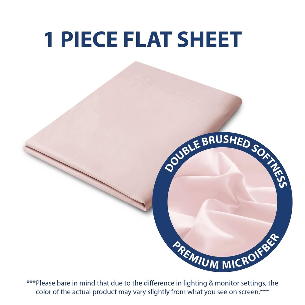 A good night's sleep starts with the right bedding, and sometimes, you find yourself in need of replacing only part of that bedding. Why pay for a whole new set when only piece is ripped, stained, or simply worn out ? With this great deal on a single flat sheet, you don't have to ! The super-soft and silky-smooth feel microfiber fabric is hypoallergenic, and its array of solid colors allows you to match the rest of your existing bedding or shake things up with a coordinating hue. WHAT’S INCLUDED - Full size: 1 Flat Sheet 81" x 96". IRRESISTIBLE BEDDING - This beautiful flat sheet will enhance the comfort of your bed and the style of your bedroom. Made of 100% double brushed microfiber, it is lightweight, durable, and buttery soft. *Microfiber is an umbrella term for ultra-fine synthetic fibers that are commonly made from polyester and polyamide. HOME ESSENTIALS - Available in a wide assortment of vivid color options ranging from neutral to bold, this flat sheet, suits any style. *Please bare in mind that due to the difference in lighting and monitor settings, the color of the actual product may vary slightly from wht you see on screen. EASY CARE - They are also machine washable and quick drying for easy care. OEKO-TEX CERTIFIED - Tested and certified to be free from harmful chemicals, the sheets meet high safety standards.