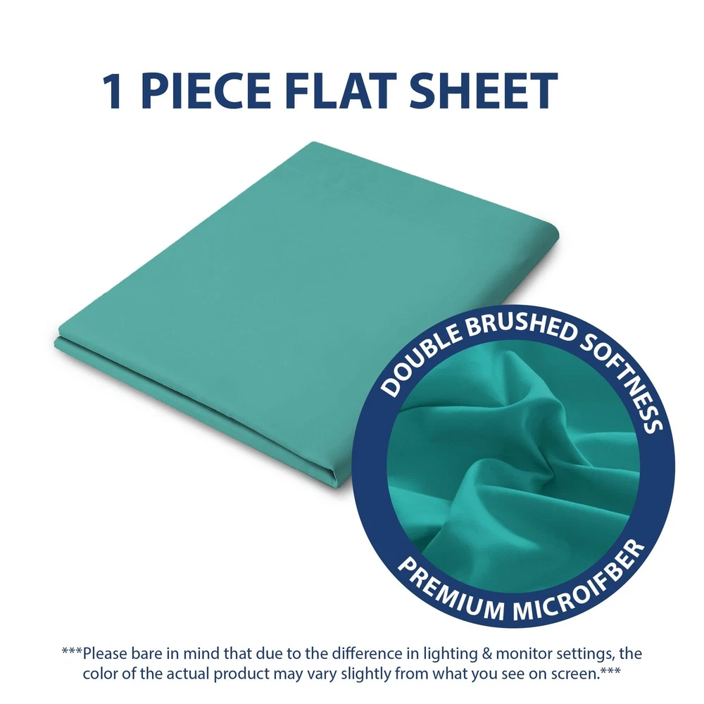 A good night's sleep starts with the right bedding, and sometimes, you find yourself in need of replacing only part of that bedding. Why pay for a whole new set when only piece is ripped, stained, or simply worn out ? With this great deal on a single flat sheet, you don't have to ! The super-soft and silky-smooth feel microfiber fabric is hypoallergenic, and its array of solid colors allows you to match the rest of your existing bedding or shake things up with a coordinating hue. WHAT’S INCLUDED - King size: 1 Flat Sheet 102" x 105". IRRESISTIBLE BEDDING - This beautiful flat sheet will enhance the comfort of your bed and the style of your bedroom. Made of 100% double brushed microfiber, it is lightweight, durable, and buttery soft. *Microfiber is an umbrella term for ultra-fine synthetic fibers that are commonly made from polyester and polyamide. HOME ESSENTIALS - Available in a wide assortment of vivid color options ranging from neutral to bold, this flat sheet, suits any style. *Please bare in mind that due to the difference in lighting and monitor settings, the color of the actual product may vary slightly from wht you see on screen. EASY CARE - They are also machine washable and quick drying for easy care. OEKO-TEX CERTIFIED - Tested and certified to be free from harmful chemicals, the sheets meet high safety standards.