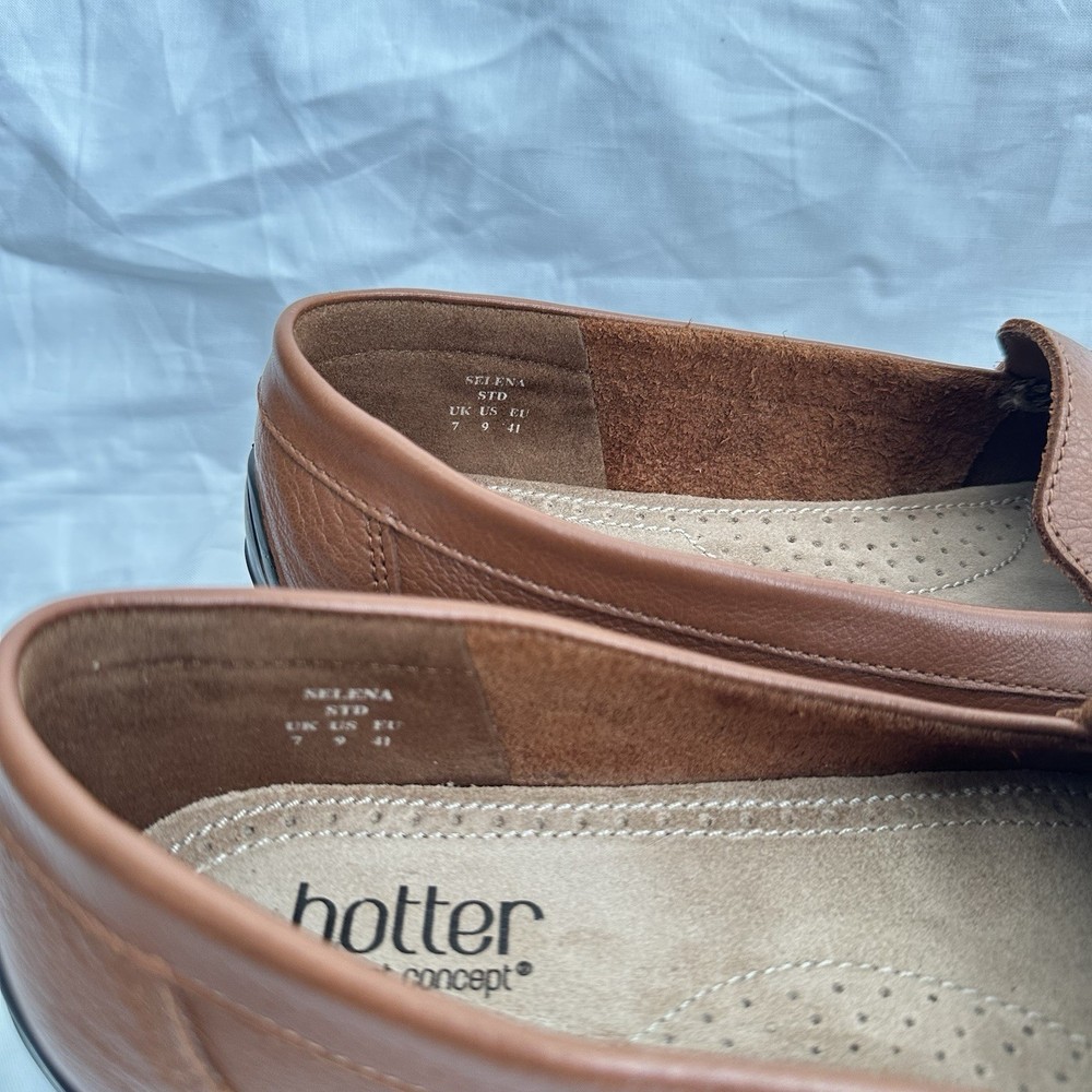 The Hotter Comfort Concept Brown Loafer Women's Size 9 is a stylish and comfortable pair of flat shoes designed for women. Made with leather and featuring a medium width, these loafers are perfect for everyday wear. With a UK size of 7 and a corresponding US size of 9, these shoes are crafted in the United Kingdom, ensuring quality and durability. The brown color and loafers & moccasins style make them versatile enough to be worn with a variety of outfits.