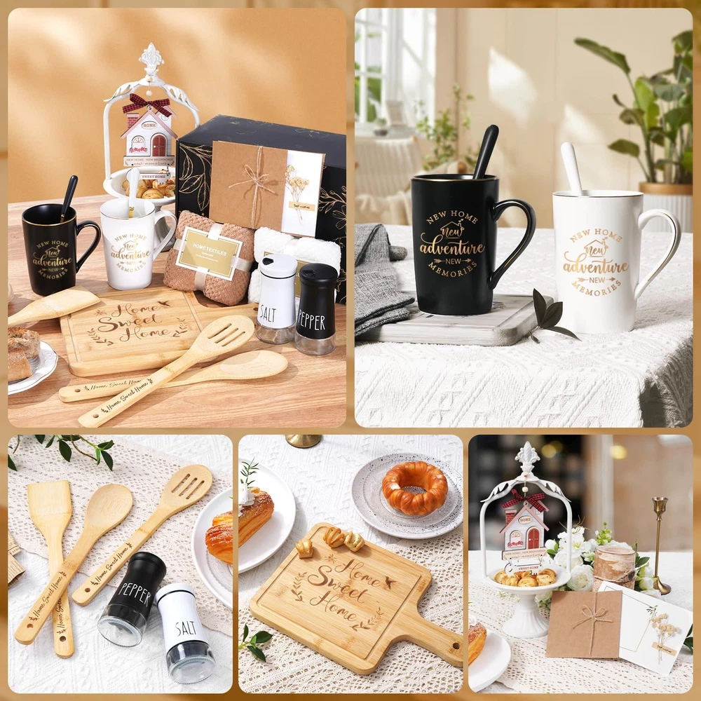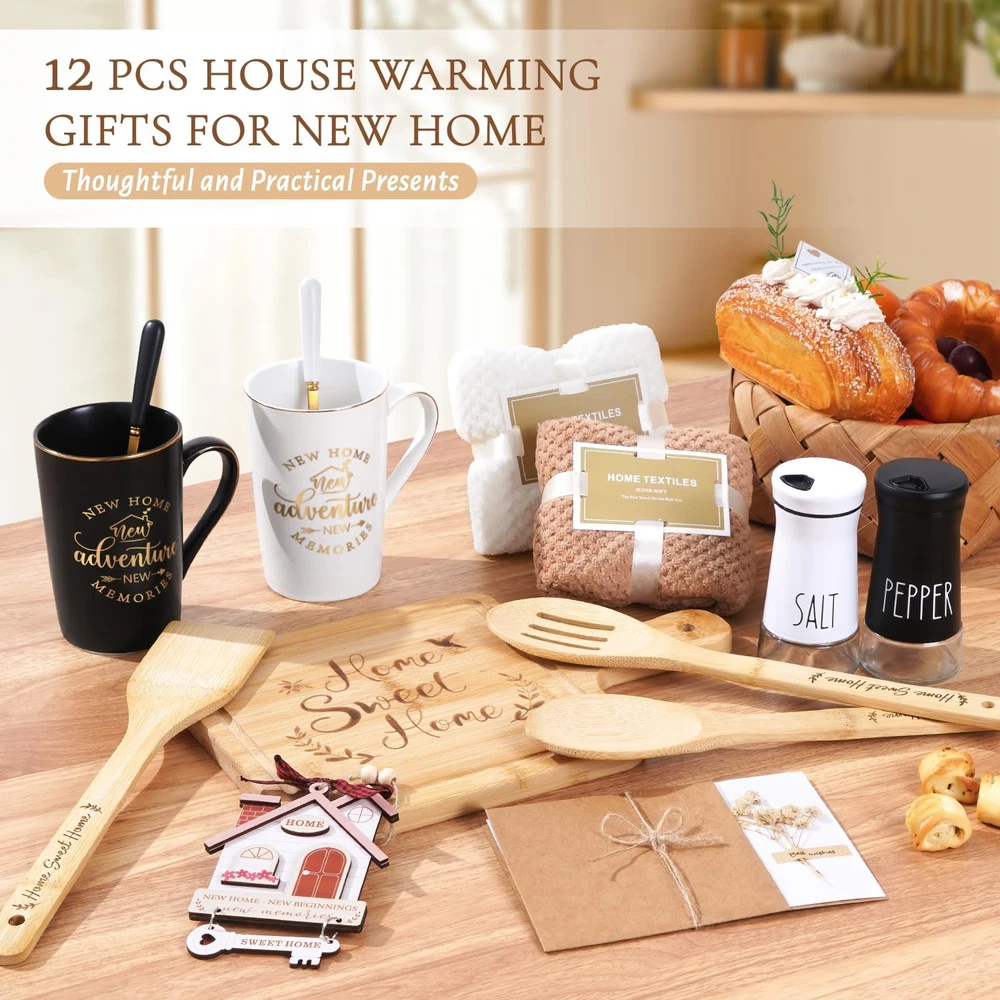 Store New Arrivals Add to Favorite View Feedback Contact Fast deliveries to the customer's home Quality customer service John Make the customers happy! House Warming Gifts New Home, 12 Pcs New House Gift Basket, Housewarming Present for Homeowners Couples Women, Closing Gifts for Home Buyers Description THOUGHTFUL GIFTS: Delight your loved ones with a touch of comfort and joy as they settle into their new nest by sending them this exquisite house warming gifts new home. Cherish those key-turning moments and turn houses into homes with heartfelt warmth. It will be great new home gift ideas for men, women, couples, friends, family, colleagues who just bought a new house and help them create unforgettable memories. 12 PRACTICAL PIECES FOR NEW HOUSE: The new home gift set contains 1*delicate new home ornament, salt and pepper shakers set of 2, new home coffee mugs set of 2, 1* serving board, cooking spoons set of 3, 2*hand towels,1*gift card,1*gift box. These items will be a lasting reminder of the joy and anticipation of their first day in a new home. READY TO GIFT: Present the charm of a new home with our thoughtfully assembled housewarming gift set. Encased in a gorgeous gift box adorned with elegant floral design, it exudes grace and style. Accompanied by a delicate dried flower greeting card for your personalized message. This set is ready to gift, making it an effortless way to express your congratulations and heartfelt wishes. CONVENIENT USE: The serving board and cooking spoons are made of natural bamboo with heartwarming texts " Home Sweet Home " on them. The bamboo cutting board with a handle works well as a vegetable/cheese/bread board or a serving board. It can be easily cleaned by water after use. Don't soak in water or dishwasher. You can use the towels provided in the box to wipe it clean. SALT & PEPPER SHAKERS SET: The set is is crafted with stylish modern style and made of premium material for lifetime use. The glass bottom is visual so you can easily know when to refill. And there are adjustable pour holes settings on the above to control the amount of seasoning. Product description Item Weight 4.62 pounds Item model number MCC1207-GB Color Multicolor Package Dimensions 13.66 x 12.99 x 5.71 inches ABOUT US We offer the best prices around on high quality products. Our E-store includes media such as books, movies, music and games while offering electronics, toys, sporting apparel, clothing, tools, general home, garden items and more. SHIPPING We are always working hard to ensure your package arrives as soon as possible. Please understand that some factors like weather, high postal traffic, and the performance of shipping companies are outside of our control. We offer free shipping to the lower 48 states and ship within 2 business days of payment, usually sooner. We do not accept P.O. Boxes. Please provide a physical address. For shipping outside of the continental USA, we only use eBay's Global Shipping Program. The item is shipped to KY and then sent to the rest of the world. International customers are responsible for all duties and taxes. Continue to 'check out' to calculate costs for shipping the item to your country. Messages regarding eBay's Global Shipping Program MUST be directed at eBay EXCLUSIVELY. RETURNS We offer a 30-Day Return Policy on items in which you are not completely satisfied with. You have the option of a full-refund or an exchange of the item. No returns are available on items shipped outside of the USA PAYMENT We accept PayPal. CONTACT US This page content is yet to come Please ad us to your favorite seller and visit again later Thank You CUSTOMER SATISFACTION We try our very best to make sure every customer is completely satisfied. If there's a problem, message us! We're happy to help. WE ACCEPT