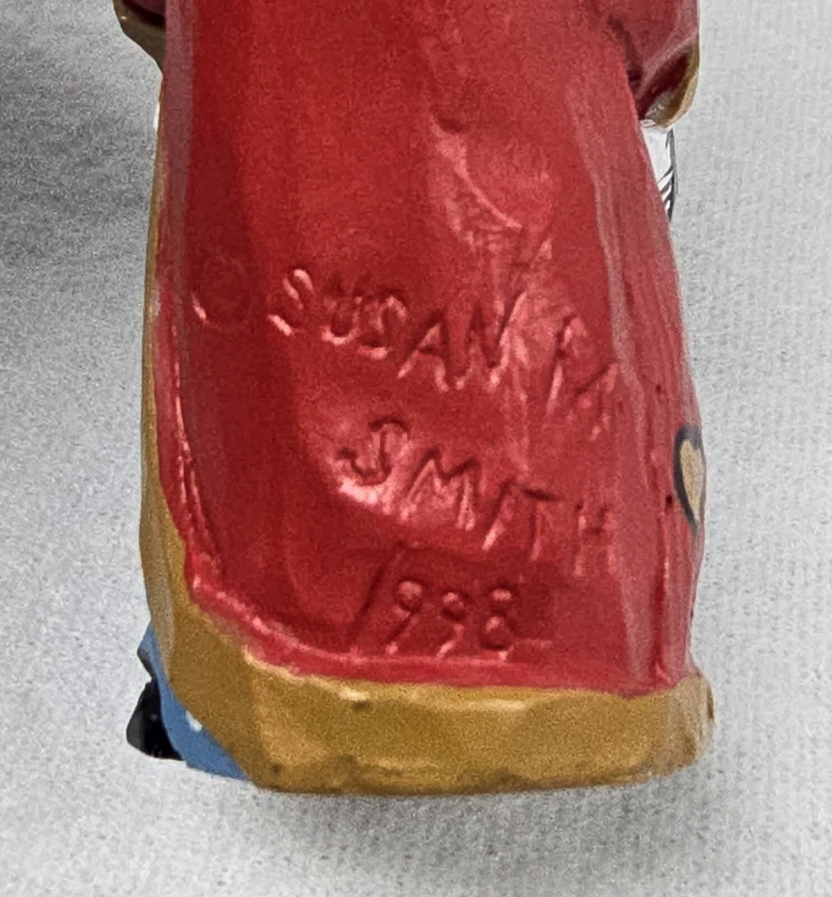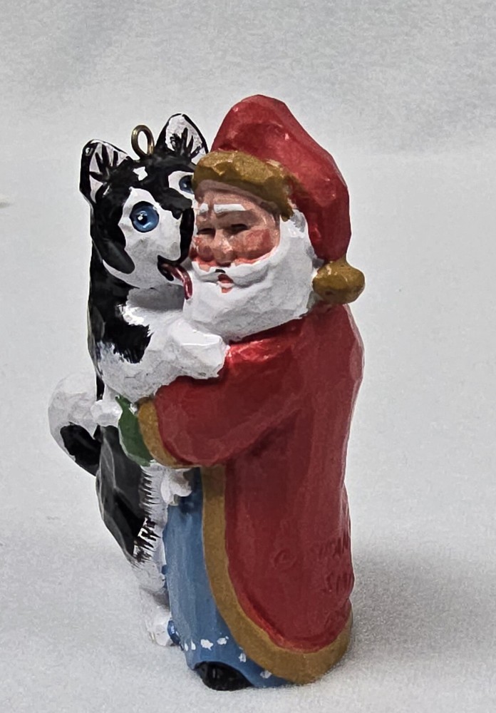 House of Hatten Susan M Smith Christmas Ornament Santa & Husky Signed and dated 1998. Measures 3 ¼” high. Very good pre-owned condition.