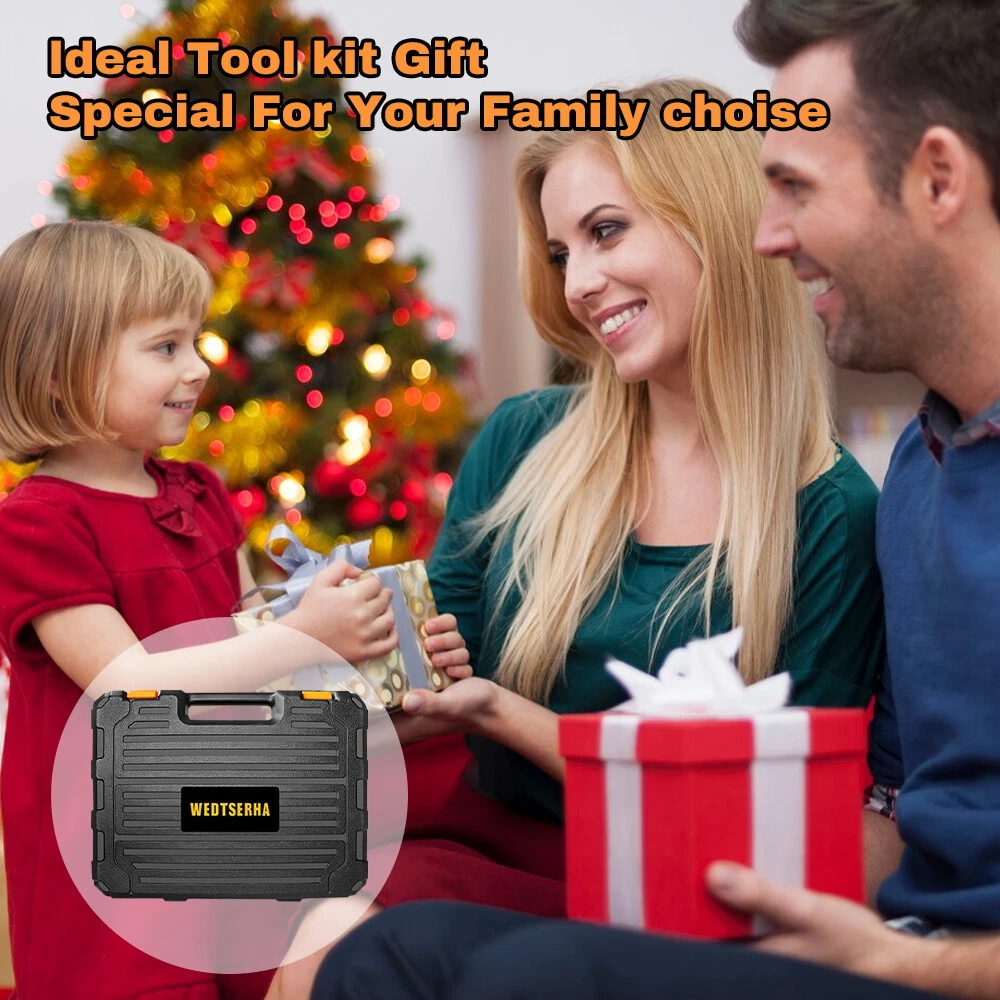 【HIGH QUALITY TOOL SET 】The home tool kit with case is forged from high-quality steel and finished in high-polish chrome for durable strength and anti-corrosion. 【COMPLETE H OUSEHOLD TOOL SET】 This basic tool kit for home contains most of household tools for doing DIY projects,home repair and daily use,includes hacksaw,adjustable wrench,claw hammer,pliers,ratchet wrench,drive sockets,screwdrivers,utility knife,tape measure,voltage tester pen,insulation tape,allen wrench,hardware kits and screwdrivers bits connectors. 【PORTABLE TOOL SET FOR HOME】 Starter tool kit for household is organized in a folding sturdy handy blow molded storage case,easy to carry and storage without taking up much space. 【HOME TOOL KIT FOR ALL PURPOSE】 You can use this tool box sets for men to do jobs such as putting up pictures,assembling furniture,hanging tv and do home repairs around the house.The diy tool kit is also a warming gift for men on Father's Day or women,college students,handyman,homeowner,construction workers or staters on Birthday and Anniversary. 【YOUR STARTER BASIC TOOLKIT】 One home maintenance tool kit helps you to resolve all repair jobs.All set of tools are made of soft grip handle,lightweight and comfortable to hold,all the household tools for home in the tool box set with tools meet or exceed the ANSI. 【 INCLUDED COMPONENTS 】 1 x Ratchet Wrench,2 x Screwdrivers,4 x Precision Screwdriver Set,1 x Utility Knife,1 x Tape Measure 3m (10ft),1 x Voltage Tester Pen,1 x Hack Saw,8 x Hex Key Wrenches,9 x Drive Sockets,1 x Adjustable Wrench,1 x Claw Hammer,1 x Long Nose Pliers,1 x Slip Joint Pliers,1 x Insulation Tape,1 x Hardware Accessories Kit,30 x Screwdrivers Bits Connectors,3 x Saw Blades,10 x Utility Knife Blades,1 x Carrying Case Why Choose OUR Home Tool Kit with Case? Handsaw 2-in-1 hacksaw with 3 replaced blades,suitable for cutting wood and plastic pipe. Ratchet Wrench Includes 1 ratchet handle and 30 piece screwdriver bits,meet most of your needs for DIY Projects and home maintenance. Claw Hammer Our claw hammer is forged from high-grade steel and finished in high-polish chrome,perfect for carpentry,household repair, construction work and general maintenance. Pliers Set Our pliers set includes needle nose pliers and slip joint pliers, made of high-grade steel,perfect for home improvements and DIY projects. Adjustable Wrench Our adjustable wrench is made of High quality forged carbon steel,heat-treated for durability. Screwdriver Set Includes magnetic screwdrivers to attract screws,helping reduce dropped and lost fasteners. Precision Screwdrivers Comes with 6pcs precision screwdrivers for computer, watches, glasses repairs. Hex Key Allen Wrench Includes 8 diffrent size hex key set,made of chrome-vanadium steel for rugged strength,perfect for quickly tightening or loosening fasteners.