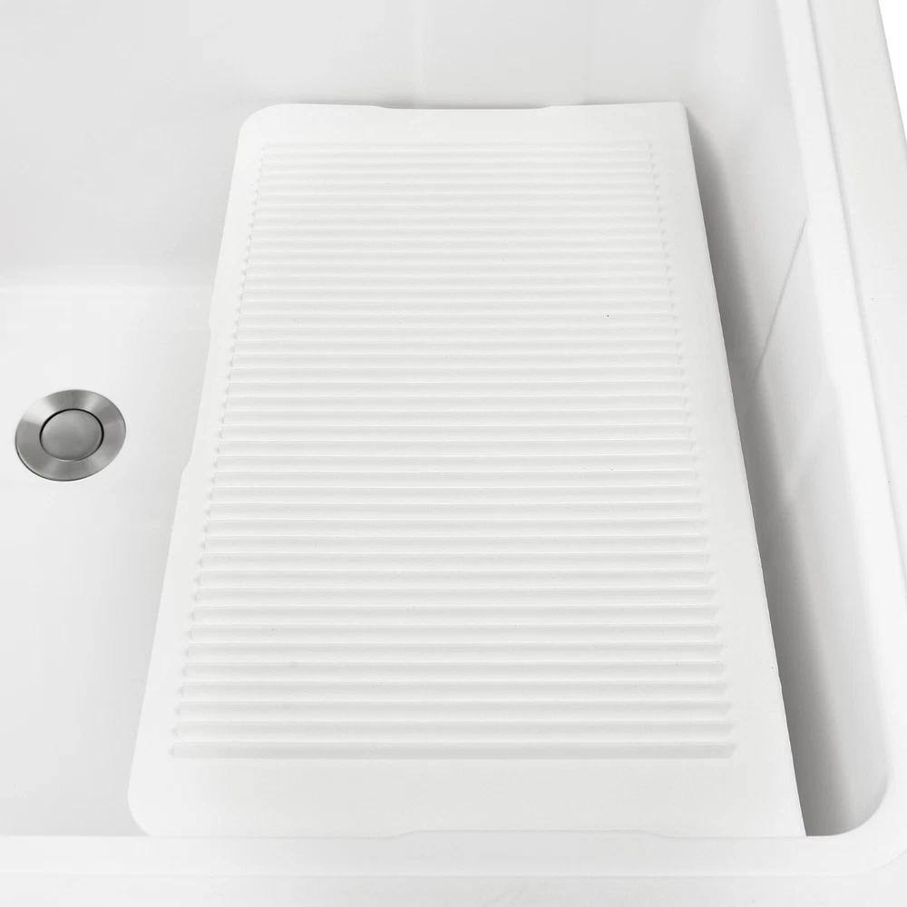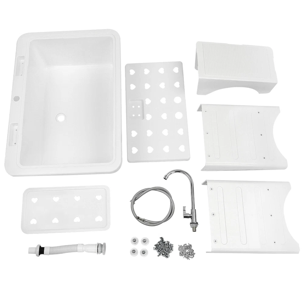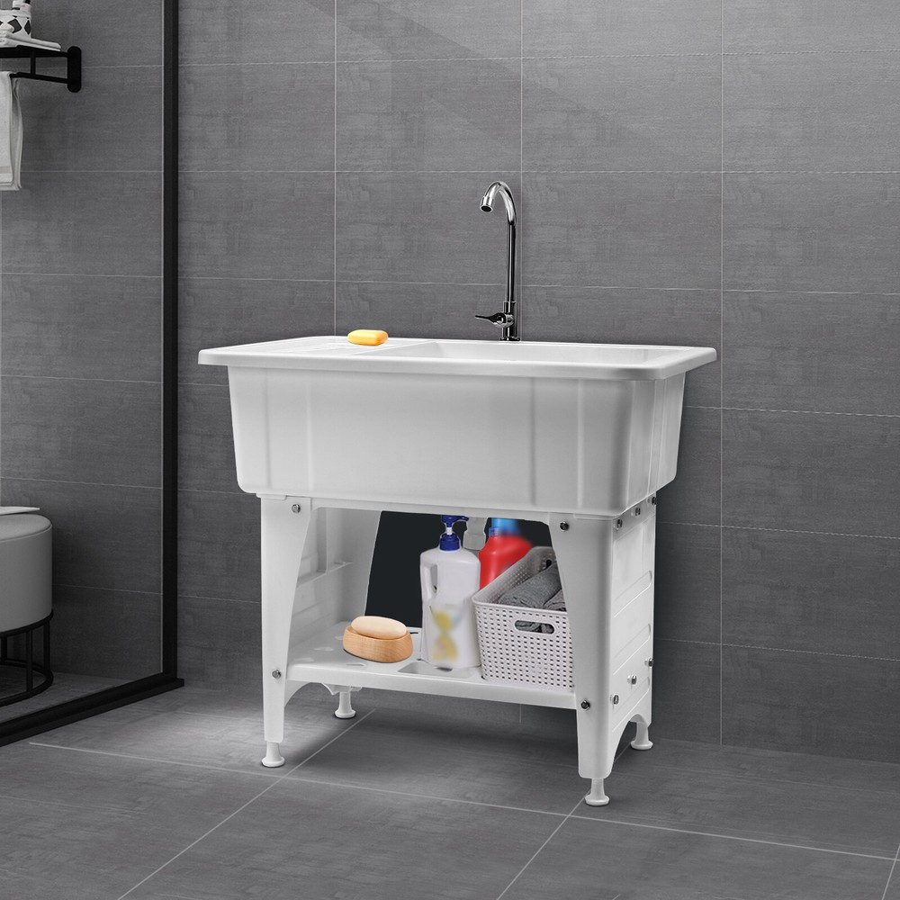 Household Large Size Wash Tub Utility Sink Freestanding Laundry Tub with Faucet Description Made of High-quality Pp, This Laundry Sink Is Sturdy and Durable, with Strong Load-bearing Capacity and Stability. the Versatile White Color Appearance and Smooth Lines Can Fit Well with Various Home Decor Styles. the Non-drilling and Hand-screwing Design Makes Installation Easier, and Its Large Sink Size Provides You with Enough Cleaning Space. with This Product, You Can Do Laundry While Standing, Avoiding the Strain of Bending over for Long Periods. Key Features Selected Material: the Premium Pp with the Injection Molding Process Makes This Product Environmentally Friendly, Rustproof, and Acid and Alkali-resistant , Ensuring a Long Service Life. Ergonomic Design: the 29.92" Overall Height(Not Including the Faucet) Reduces the Frequency of Bending and the Burden on Your Waist. the Water-stopping Edge Around the Sink Prevents Water from Splashing Onto the Floor and Keeps the Floor Dry to Avoid Slipping. High Stability: Thickened Material(Thickness: 2.8mm), Four Supporting Lage, Stable Rectangular Structure, Strong Screw Fixation, and Reinforcing Rib Make Its Weight Capacity up to 220.46 Lbs, and the 1.18in Adjustable Feet on the Bottom of the Sink Can Adapt Well to Uneven Ground, Making the Product More Stable and Safer to Use. Large Size: the Large Sink Size (32.28*22.44*9.84 in) Allows You to Clean Large Amounts of Clothes and Wash Pet Cats and Dogs Inside. Its Large Capacity (29.06gal) Makes It a Convenient Water Storage Sink When Plugging the Drain Stopper. Effortless Installation: Its Simple Structure, Standard Threaded Connector, Convenient Wing Nuts, and Complete Installation Accessories Allow You to Easily Complete the Installation in a Short Time Without Additional Tools. Washing Assistant: a 360° Rotatable High Faucet (Height: 13.39 in) with a Comfortable Handle Allows You to Easily Adjust the Water Flow, and Achieve Dead-end Cleaning . in Addition, a Removable Washboard and a Drain Board Can Adapt to Your Different Needs, and the Surface of the Washboard Is Designed with an Inverted Triangle to Better Remove Stains. the Bottom of the Sink Is Designed with a Concave Center to Drain Water Quickly. Hollow-out Design: the Lower Shelf and the Drain Board Are Multiple Hollows, Helping Quickly Filter the Residual Water on the Washing Items, so It Is Not Easy to Breed Bacteria . Easy to Clean: Due to the Smooth Surface, Simple Structure, and Open Design, You Can Easily Wipe off the Dirt on It with a Soft Cloth. Ideal Gift: This Product Is Stylish and High-quality and Can Be Used As an Ideal Housewarming, Birthday, and Holiday Gift for Parents, Friends, and Loved Ones. Good Customer Service: We Stand Behind All Our Guests and Look Forward to Assisting You with Your Purchase. It Is Our Pleasure to Answer Your Confusion and Questions. the End of the Story Between Us Is Not "We Sell and You Buy". Details Soap Grooves: Three Soap Grooves with Holes Can Help Place the Soap and Dry It, Providing Convenience for Washing Clothes. Stretchable Drain Pipe: It Can Be Bent into the Desired Shape According to the Installation Needs, Which Is Convenient for Drainage. Raised Bottom: It Facilitates Cleaning but Also Increases the Storage Space. Smooth Edges: the Rounded and Smooth Edges Not Only Add to the Aesthetics of the Product but Also Improve the Safety of Use. Application It Is Suitable for Cleaning Clothes, Pets, Pots and Pans, Fruits, Vegetables, Meat, Etc. in Laundry Rooms, Bathrooms, Utility Rooms, Garages, Basements, Kitchens, Balconies, Patios, Gardens, and so on. It Not Only Can Be Used As a Laundry Sink but Also Can Be Used As a Storage Rack, Pet Bathtub, Baby Bathtub, and so on. Specification Material: Pp Color: White Process: Injection Molding Assembly Required: Yes Faucet Opening: Single Hole Installation Method: Freestanding Style: ‎modern Shape: ‎rectangular Faucet Adjustable Angle: 360° Maximum Bearing Capacity: 100kg/ 220.46 Lbs Laundry Sink Capacity: 110l/ 29.06 Gal Water Inlet Hose Length: 1m/ 3.28ft Drain Pipe Length: 0.8m/ 2.62ft Faucet Height: 34cm/ 13.39 in Drain Board Size(L*W): 44.5*26cm/ 17.52*10.24 in Laundry Board Size(L*W): 48*23.5 Cm/ 18.9*9.25 in Sink Size: 82*57*25 Cm/ 32.28*22.44*9.84 in Bottom Shelf Size(L*W): 63*37.5 Cm/ 24.8*14.76 in Bottom Shelf Height from the Ground: 18 Cm/ 7.09 in Bottom Leg Height: 52 Cm/ 20.47 in Adjustable Foot Height: 3cm/ 1.18in Product Height (Including Faucet): 110 Cm/ 43.31 in Product Height (Not Including Faucet): 76 Cm/ 29.92 in Thickness: 2.8mm/ 0.11in Gross Weight: 11kg/ 24.25 Lbs Package Size: 83*57.5*31.5 Cm/ 32.68*22.64*12.4 in Package Included 1* Laundry Sink 1* Faucet 1* Drain Board 1* Laundry Board 1* Drain Stopper 1* Water Inlet Hose 1* Drain Pipe All Accessories for Installation Notes Please Allow the Slight Color Difference Caused by the Shooting Light and the 1-3 Cm Error Due to Manual Measurement, and Make Sure You Do Not Mind Before Ordering. Payment Delivery details Terms of sales About us Contact us Payment We accept ebay payment 。 Fees such as import duties, taxes are not included in the item price or shipping costs. These charges are the buyer's responsibility. Delivery details Shipping: 2-9 working days to: USA Terms of sales We maintain high standards of excellence and strive for hundred percent customer satisfaction. Feedback is very important to us. We hope that you contact us immediately before you give neutral or negative feedback, so that we can address your concerns. It is impossible to address issues if we do not know about them! About us Your satis faction is our ultimate goal. We work hard to earn your trust and future business. Our certified technicians have tested each item before shipping. The unit comes with 1 year limited warranty on all manufacturing defects. a) If you receive a defective item, you may return it or ask for a discount. Please contact us within 14 days after you receive the package. b