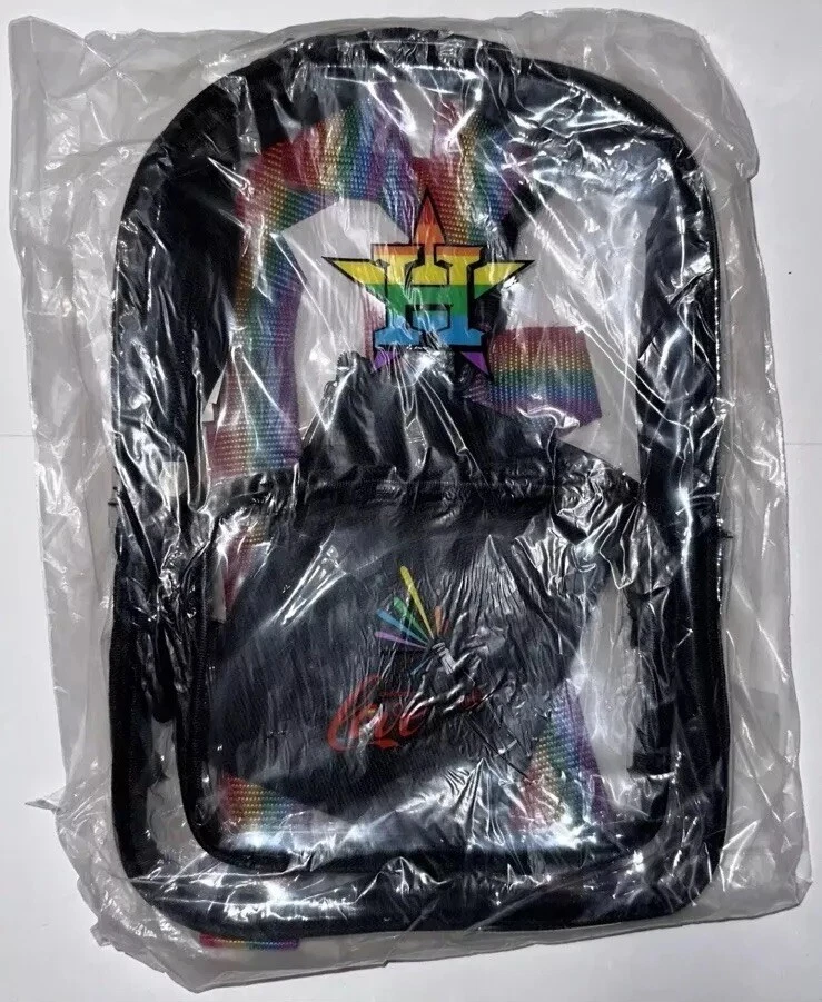 The Houston Astros SGA Pride Day Clear Mini Backpack is an officially licensed MLB product that features the Houston Astros team. This baseball-themed backpack is a stadium giveaway and is perfect for fans who want to show their support for the team. The backpack is clear and has a mini size, making it easy to carry around. It is new, unused, and in hand, ready to be used by its owner.