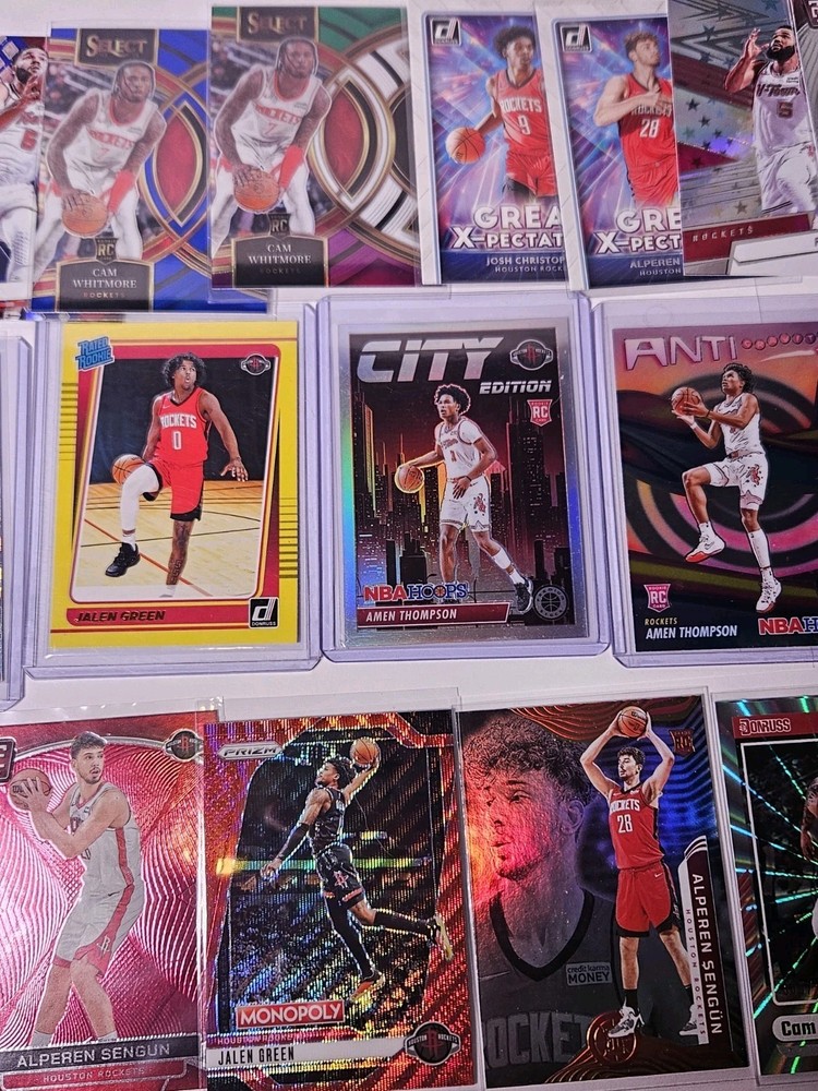 This Houston Rockets basketball card lot features a variety of rookie cards, numbered cards,