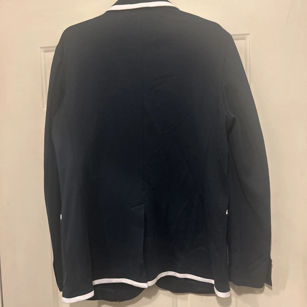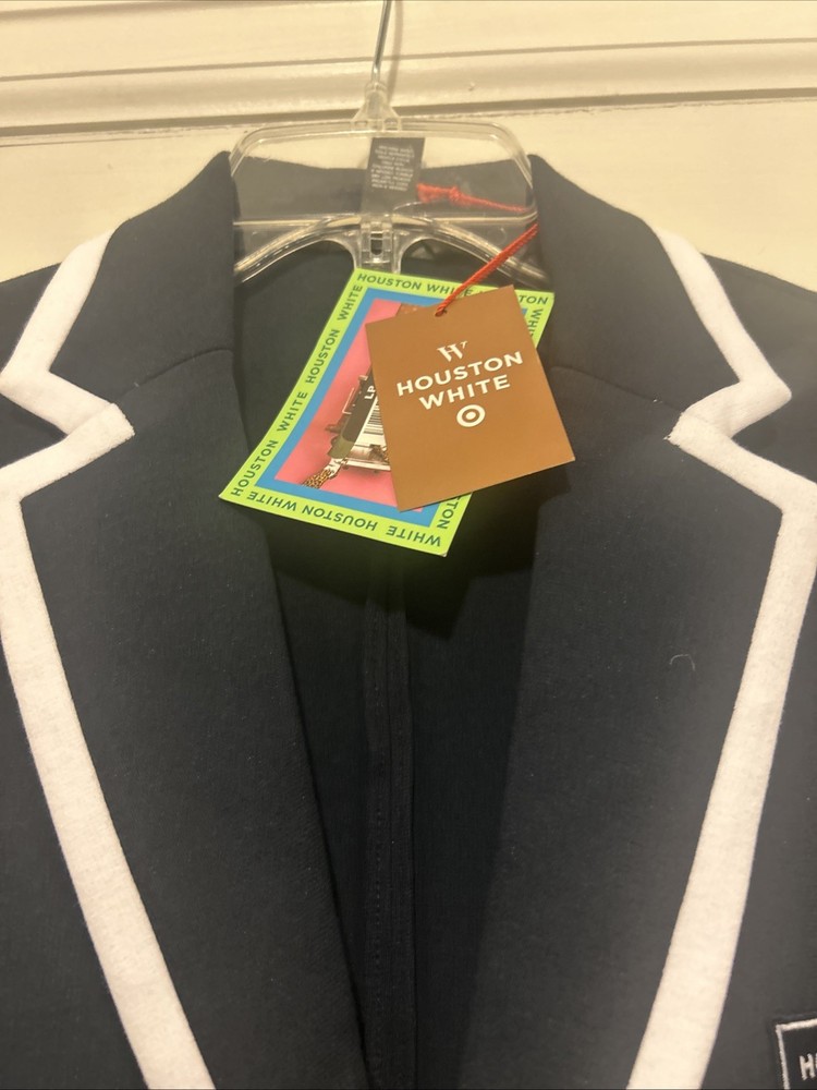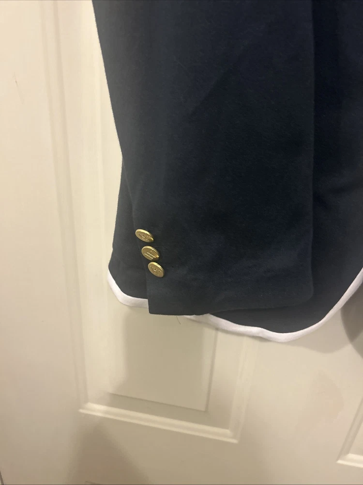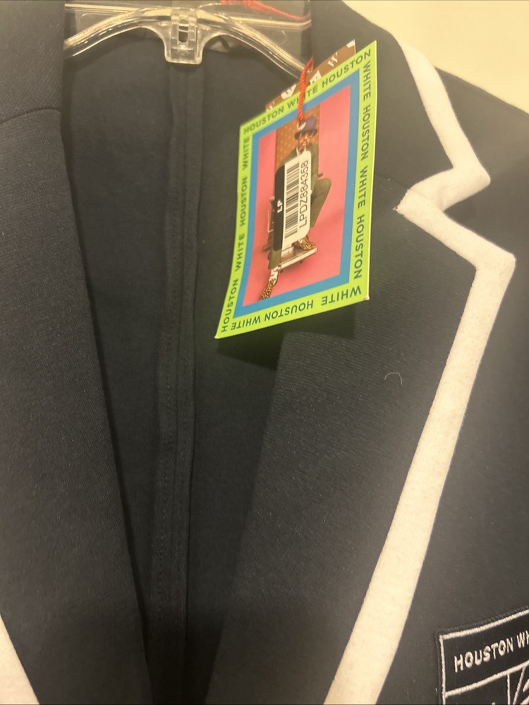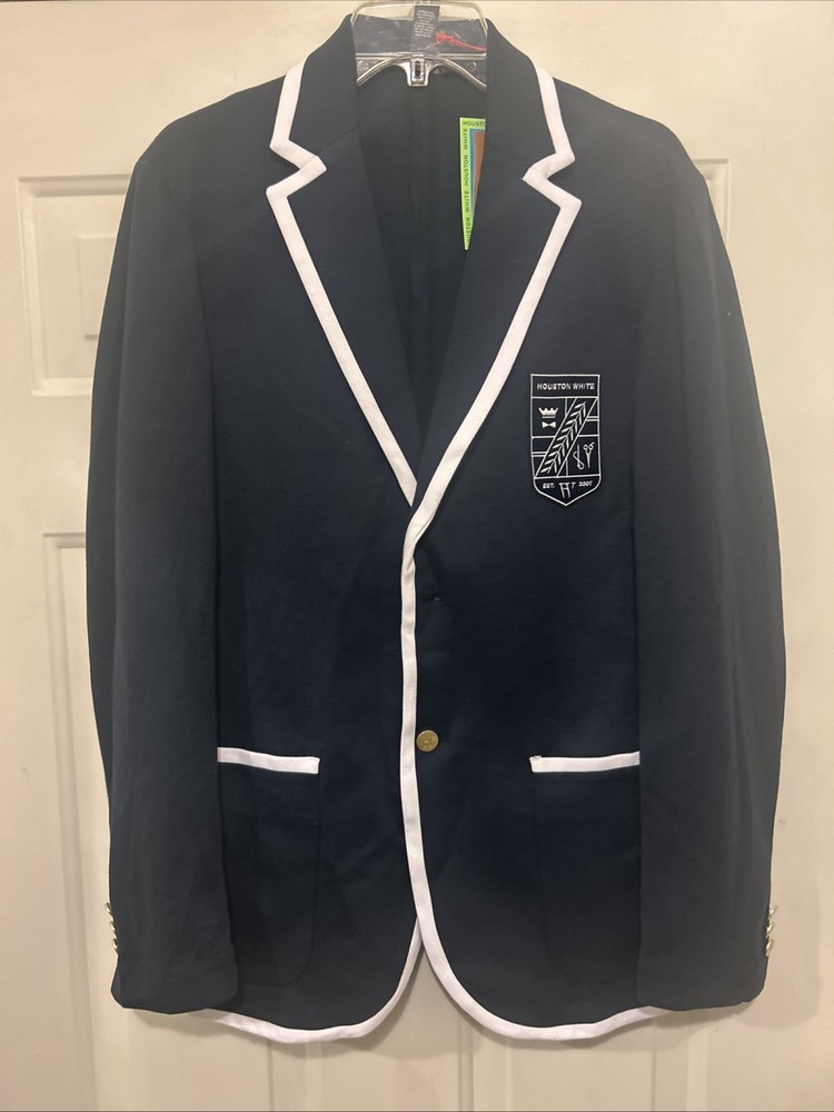 Houston White Men's Navy Blue Crest Preppy Blazer Size Large(2) (4) Medium Nwt. Condition is New with tags. Shipped with USPS Ground Advantage.