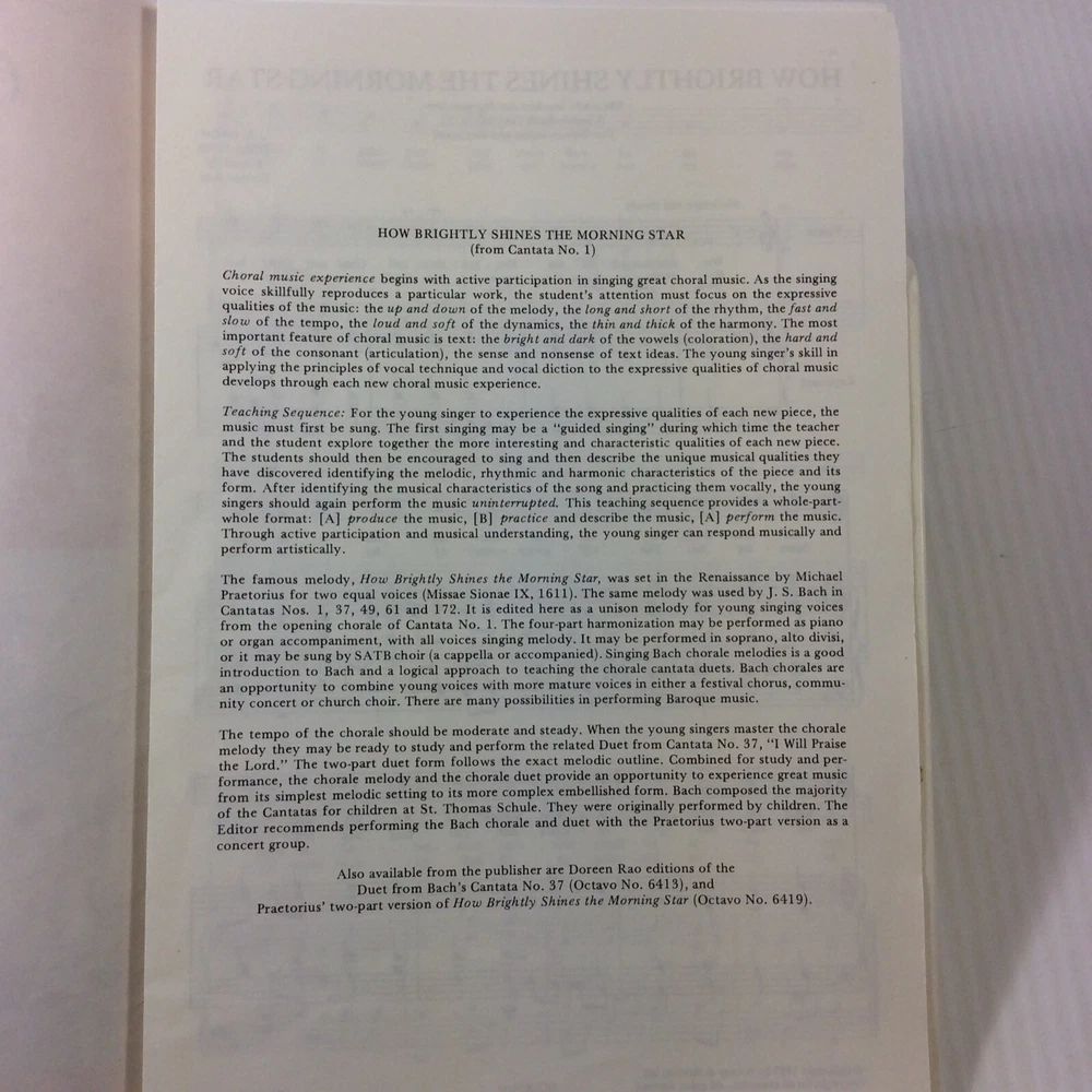How Brightly Shines The Morning Star Bach Choral Sheet Music Octavo Lot 8 Choral Sheet Music Octavo good vintage condition, see photos, may have markings We will combine shipping on purchases of multiples for a lower shipping cost to you. Check our storefront under about us for a current COUPON CODE for discount on purchases of multiple items We offer discounted shipping for purchases of multiples and volume pricing on most items All items come from smoke free storage environment Ships within 1 day of purchase, most shipped same day Be sure to visit our store for many other items We are a general store, so you never know what might come in CLICK HERE and Visit Our eBay Store: Robin's General Store