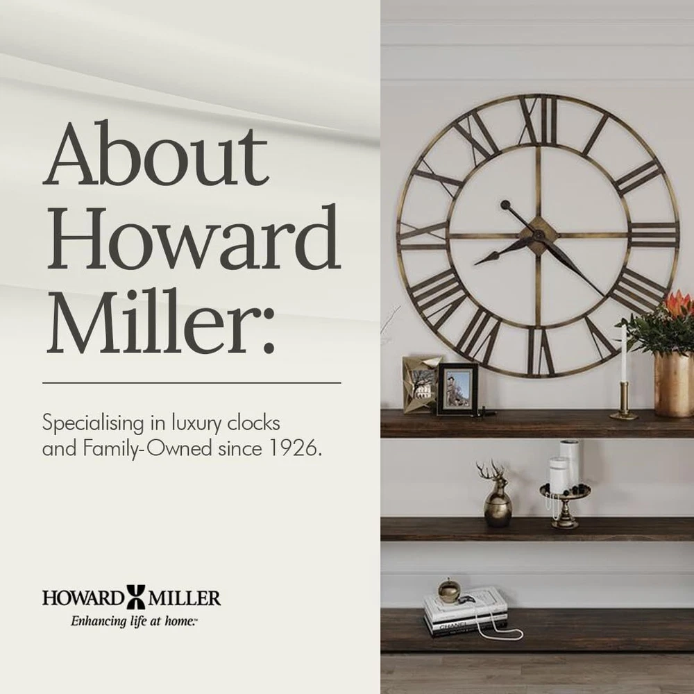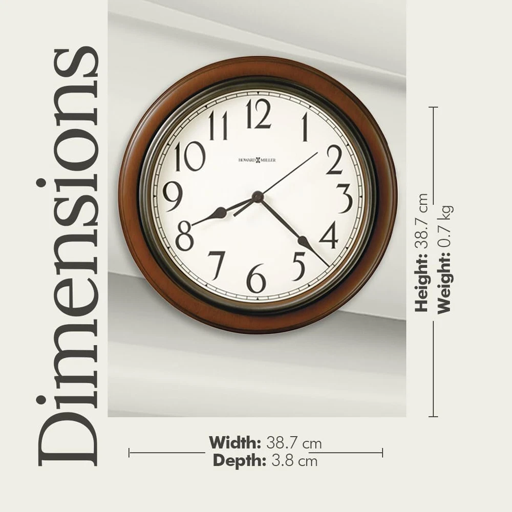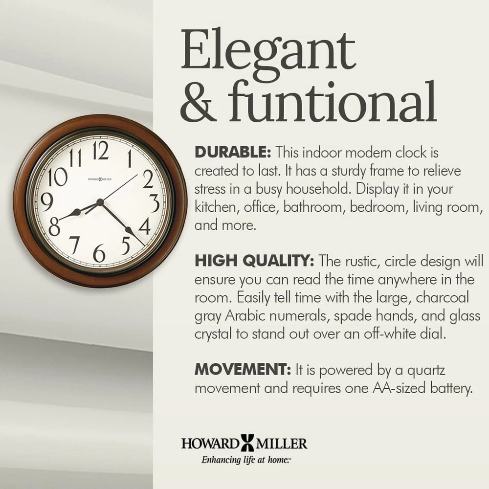 Product Description This Kalvin Wall Clock by Howard Miller has a medium-brown cherry finished case with charcoal gray bezel. Large, charcoal gray Arabic numerals, spade hands, and glass crystal. It has a modern, yet rustic look and is battery operated to be a great décor piece. Howard C. Miller founded the company back in 1926 and is based out of Zeeland, Michigan. Howard Miller understood the need to create quality and value in each product. From gaining the title “World’s Largest Grandfather Clock Manufacturer” in the 1960s, to creating collectors’ cabinets in 1989, all the products have the same attention to detail and handcrafted ideals. Hundreds of items are available from portable alarm clocks to desk sets to wall and mantel clocks to collectors’ cabinets to limited edition grandfather clocks. Howard Miller offers a warranty which is our commitment that our products have been manufactured using the finest materials and have been thoroughly inspected. Our warranty is available exclusively through authorized retailers only. Please inquire with any 3rd party seller prior to purchase to confirm warranty eligibility. Purchases made from unauthorized retailers will not be eligible for warranty services through Howard Miller or its authorized service center network. USA On Nov 23, 2024 at 02:33:11 PST, seller added the following information: