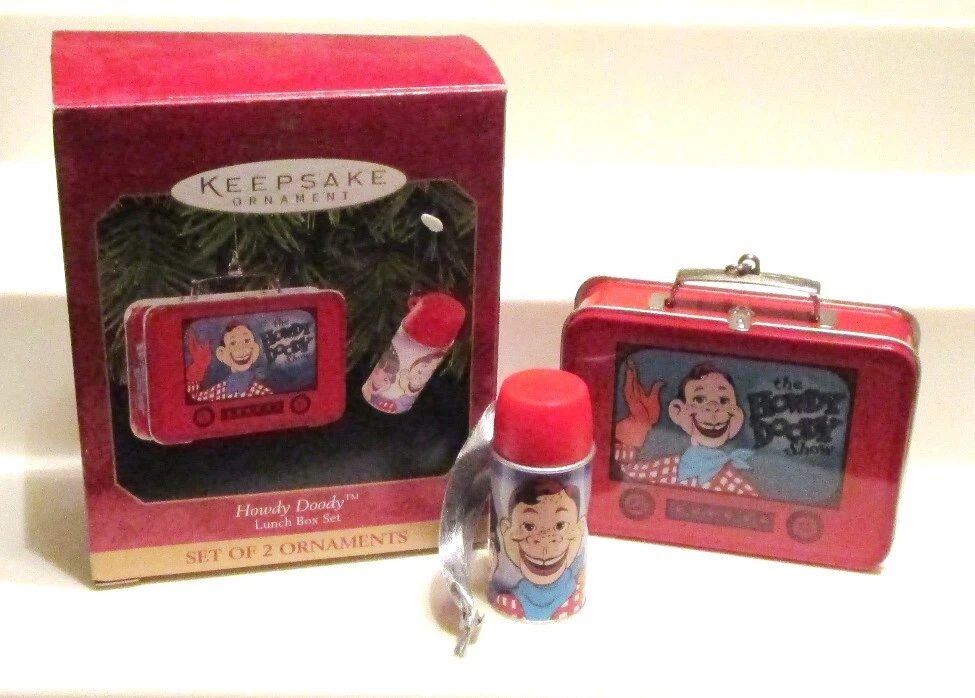 Hallmark Keepsake Ornament Howdy Doody TV Show Lunch Box Set 2 Piece Ornament -1999 Vintage Collectible. The ornament arrives in it's original box in almost like new condition. Contains 1 - lunch box and 1 thermos The item in the pictures is what you will receive We are the original owners
