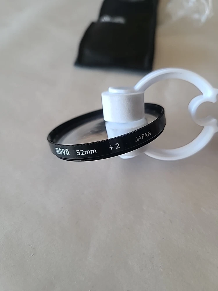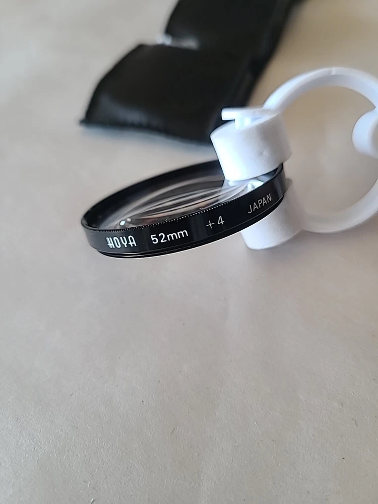 This Hoya 52mm lens filter set is a must-have for any photography enthusiast. With three different filters (+1, +2, and +4), you can easily adjust for different lighting conditions and achieve the perfect shot. The filters are designed for macro and close-up photography, and are compatible with 52mm filter sizes. Excellent condition. Only used a couple times. Stored in AC pet smoke free facility. Thanks for looking. Packed and ready to ship.