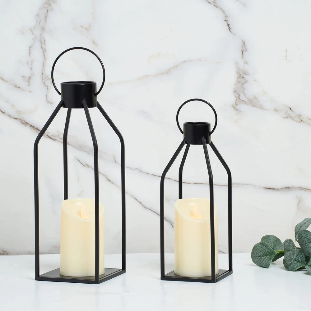HPC Decor Modern Farmhouse Lantern Decor- Black Metal Candle Lanterns for Christmas- Lanterns Decorative w/Timer Flickering Candles for Living Room,Home,Indoor, Outdoor,Table,Fireplace Mantle Décor 【Upgrade 6h Timer Function】:The flickering LED candles have been upgraded to flickering timer candles. Just set the switch to the on state at the time you want it to start and it will turn on the same time every night and run for about 6 hours. Note: The decorative lanterns are open without glass. 【Dimensions】:Our decorative candle lanterns are elegantly handcrafted of sturdy black metal frame. They are great lanterns decor for indoors and outdoors. You can hang them up or use them as table lantern decor or as floor lantern decor. Including the handle, the larger one measures 4.5x4.5x15 inch, and the smaller one measures 3.86x3.86x12 inch. The included 2 candles measure 3x5inch. Each candle requires 3 AAA batteries(NOT included). 【Wide Application】:This modern farmhouse candle lantern is versatile. You can hang them on the wall , or place the candle lanterns on kitchen dinning table and coffee table as table decor. This cute decorative lantern is made of classic black metal, and the metal finish enhances its modern charm. It shows a variety of styles and perfect modern farmhouse decor for the any room,such as living room decor, bedroom, bathroom, dining room, entrance passage,fireplace mantle decor, table decor and MORE! 【High Quality and Durable】:Use these black metal candle lanterns to add elegant warmth to any room.LED candles combine a beautiful warm white light and have an exceptionally long life. No hot wax, no smoke, no fear of falling asleep without blowing out the candles. The candle has a frosted plastic case that makes it more transparent when turned on and does not melt at high temperatures. The flameless candles can also be taken out from the candle holder for table setting. 【Perfect Gift for Any Occasion】:Give our modern farmhouse candle lanterns home decor to your special ONE! Perfect farmhouse table decor for Birthdays, Christmas, Weddings, Anniversaries, Parties, House Warming etc. Great Christmas lanterns for fireplace decoration and table centerpiece . 【Good Service】:If there is any damage or dissatisfaction with the black metal candle lanterns set, feel free to contact us! It is our responsibility to guarantee the quality you deserve. Shipping We offer FREE shipping on all orders! We ship within Three business days of payment, usually sooner. We use a selection of shipping services such as UPS, FedEx, USPS etc. We only ship to the lower 48 states, no APO/FPO addresses or PO Boxes allowed. Local pickups and combined shipping options are not provided at this time. International buyers – please note: Import duties, taxes, and charges aren't included in the item price or postage cost. These charges are the buyer's responsibility. Please check with your country's customs office to determine what these additional costs will be prior to bidding or buying. Order Cancellation Policy * Order Cancellation Policy ** You can return a product for up to 30 days from the date you purchased it. 1. The seller reserves the right to cancel the special case only due to eBay cancellation fee. 2. The decision of seller is the final. 3. The seller will respond to the cancellation request within 2 business days. Please wait for the result of cancellation. 4. In case the cancellation is not completed by some reasons, the buyer can follow the options below to get the refund. 4.1 The buyer can reject the item when it arrives. 4.2 The buyer can send the item back to the seller within 30 days If the buyer receives item (USA Shipment ONLY). The seller will provide the FREE return label to the buyer when the buyer opens " Return Item" case on eBay by using the reason as "Change my mind" ONLY. 5. When buyer has placed the order. The order will be processed and completed by automatic warehouse system within 5 minutes. In case that buyer sends the cancellation request after 5 minutes of placing the order, the request will be rejected. **Sending direct message to cancel the order is not allowed for every case.* Return Policy - If buyer would like to return the items for refund or replacement, please CONTACT SELLER to receive the free return label from seller. The refund or replacement will be processed with the tracking number of return label which is provided by seller only. The other ways of return which are not approved by seller will not be processed for the refund or replacement. Return You can return a product for up to 30 days from the date you purchased it. Any product you return must be in the same condition you received it and in the original packaging. Please keep the receipt. Payment We accept payment by any of the following methods: eBay Payments Please pay as soon as possible after winning an auction, as that will allow us to post your item to you sooner! Feedback Customer satisfaction is very important to us. If you have any problem with your order, please contact us and we will do our best to make you satisfied. Contact Us If you have any queries, please contact us via ebay. We usually respond within 24 hours on weekdays. Please visit our eBay store to check out other items for sale! Thank you for shopping at our store.