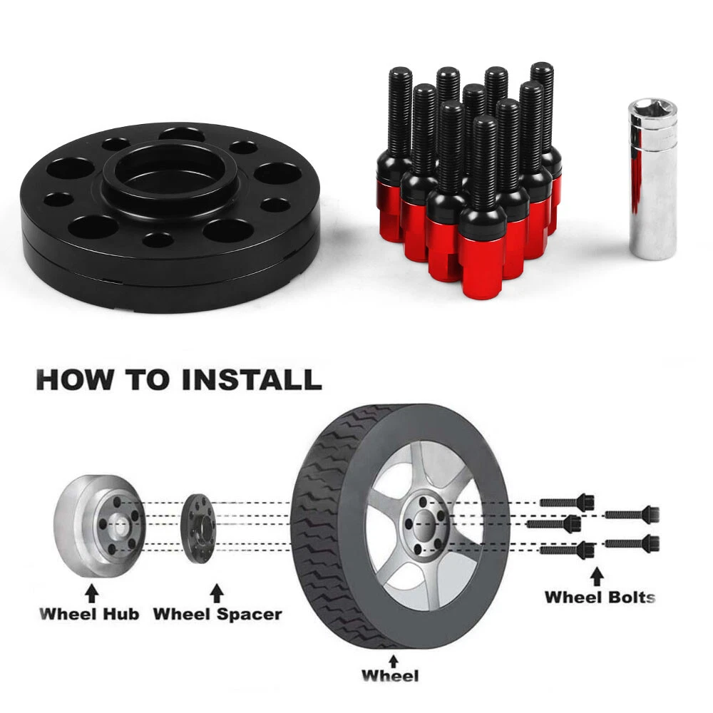 15mm 5x112mm 66.6mm Hub Centric Bore Wheel Spacers M12x1.5 Tapered Bolts For Mercedes Benz W/Ball Bolts Feature 【Product Name】Hub Centric Bore Wheel Spacers 【Color】Red 【Material】Aluminium Alloy 【Quantity】1 set Specification CNC Precisioned Machined Cut & Balanced, High-Quality and Heavy Duty Made from High Strength 6061-T6 cold forged billet aluminum Will not Vibrate Under High Speeds DIRECT BOLT-ON KIT. We have Tested These Adapters on the road and aggressive Off-Road. Wheel Bolt Specification: Quantity: 10 Pcs Lug Bolt Head: 17 mm Hex Seat Type: Ball Seat Thread Pitch: 12x1.5 Shank Length: 46mm Finish: Black Grade: 10.9 Grade, stronger than OEM 8.8 Grade Hub-Centric Spacer Specification: Quantity: 2 Spacers Vehicle Bolt Pattern: 5x112 Thickness: 15mm Center Bore: 66.6mm Hub Centric: Yes Designed: Track & Daily Use Material: Forged 6061 T-6 Aircraft Aluminum Benefit of Hub-centric Wheel Adapters: Eliminate wheel/tire rub instantly Mount Larger Wheels & Tires Increase Driving Stability Fitment: 1994-2000 W202 C Class(Fits Rear Wheels ONLY !) 2002-2007 W203 C Class(Fits Rear Wheels ONLY !) 1997-2009 W208/W209 CLK Class (Fits Rear Wheels ONLY !) 2008-2011 W203 CLC Class (Fits Rear Wheels ONLY !) 1996-2002 W210 E Class(Fits Rear Wheels ONLY !) 1972-1991 W116/W126 S Class 1972-1991 R107/R129 SL Class 1997-2003 R170 SLK Class 2004-2013 R171 SLK Class Package included: 2 pcs- 15 mm HUB CENTRIC WHEEL SPACERS 10 pcs - 12x1.5 46 mm BLACK BALL SEAT LUG BOLTS As pictures show Professional Installation is Highly Recommended Installation Instruction is NOT Included Note Manual measurement may exist 1-2cm error, please understand Please be reminded that due lighting effects, monitor's brightness/contrast settings etc, there could be some slight differences in the colour tone of the website's photo and the actual item. If there is an unexpected delay in transit of your goods, or if you find there are some unexpected problems with the product after you receive it, we sincerely hope you will email us first instead of opening a case, it is very important to us and I appreciate your understanding.We guarantee that you can get a satisfactory solution.