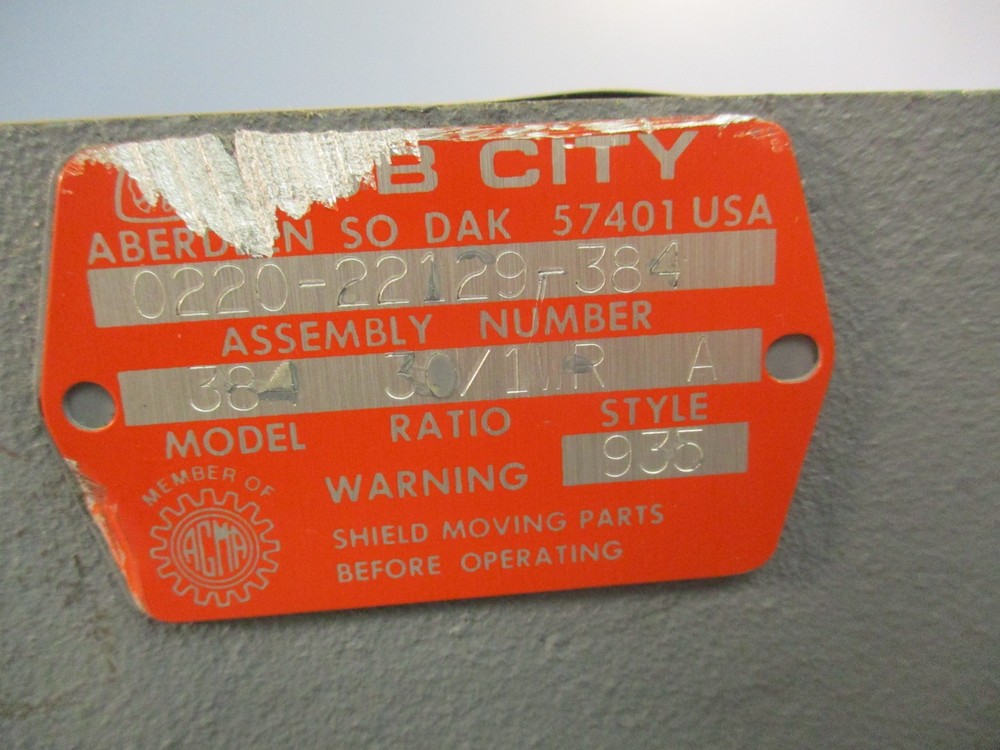 Hub City 0220-22129-384 Worm Gear Reducer 30:1 Ratio Model 384 Style A
