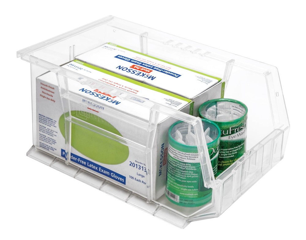 Outer Dimensions: 15" x 8" x 7" | Inner Dimensions: 14" x 6-9/16" x 6-3/4" Perfect for organizing small parts, home goods or warehouse picking bins Stackable, hangable & easy access - front, back and side grips for easy handling Continuous construction without seams allows for years of heavy use Made in the USA