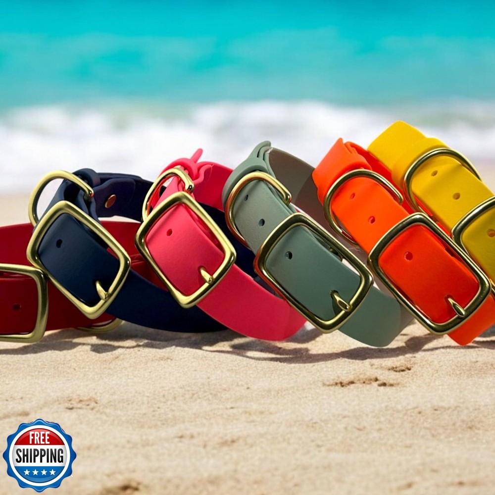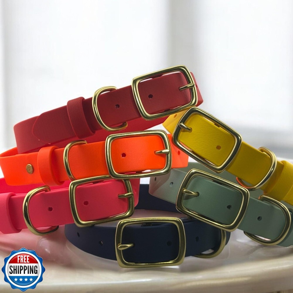 1. Absolutely love this collar! The BioThane material feels like leather but is waterproof and super easy to clean—perfect for my active pup. The brass hardware is sturdy, and the adjustable fit keeps it secure. The red color is vibrant, and it’s held up great through hikes and muddy play. Made in the USA with quality you can trust!