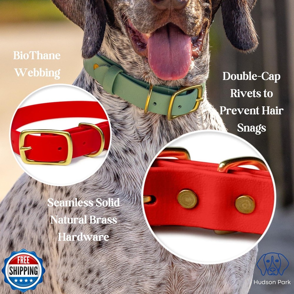 Hudson Park Waterproof BioThane Dog Collar with Leather-Like Feel and Adjustable Fit