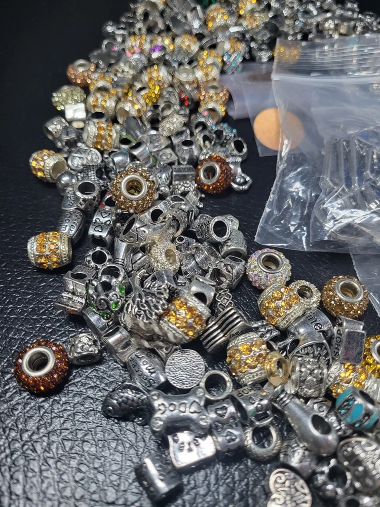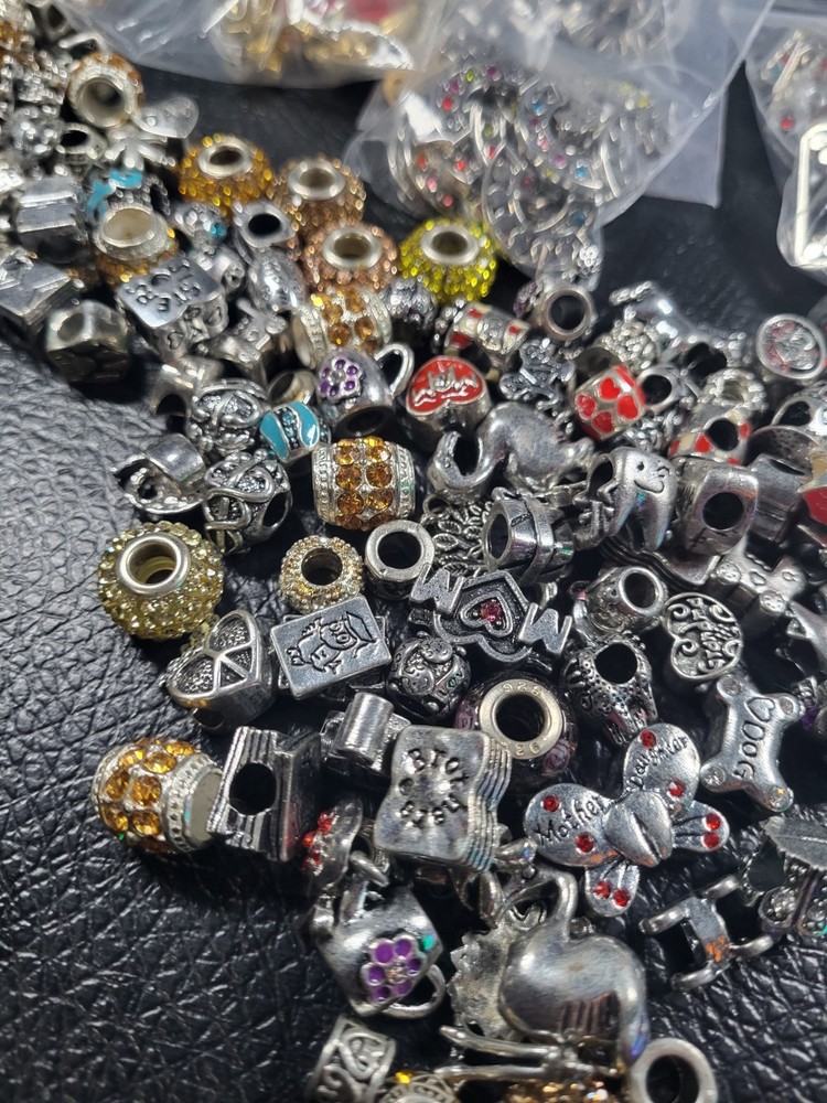 Sterling silver plated huge lot over 6 # super ornate beads for necklaces or bracelets earrings you name it This product is a huge lot of jewelry making supplies, including over 6 pounds of cabochons, beads, charms, and sterling silver components. The multicolor cabochons add a variety of colors to the jewelry creations. Perfect for crafters and jewelry makers looking to add unique and colorful elements to their projects.