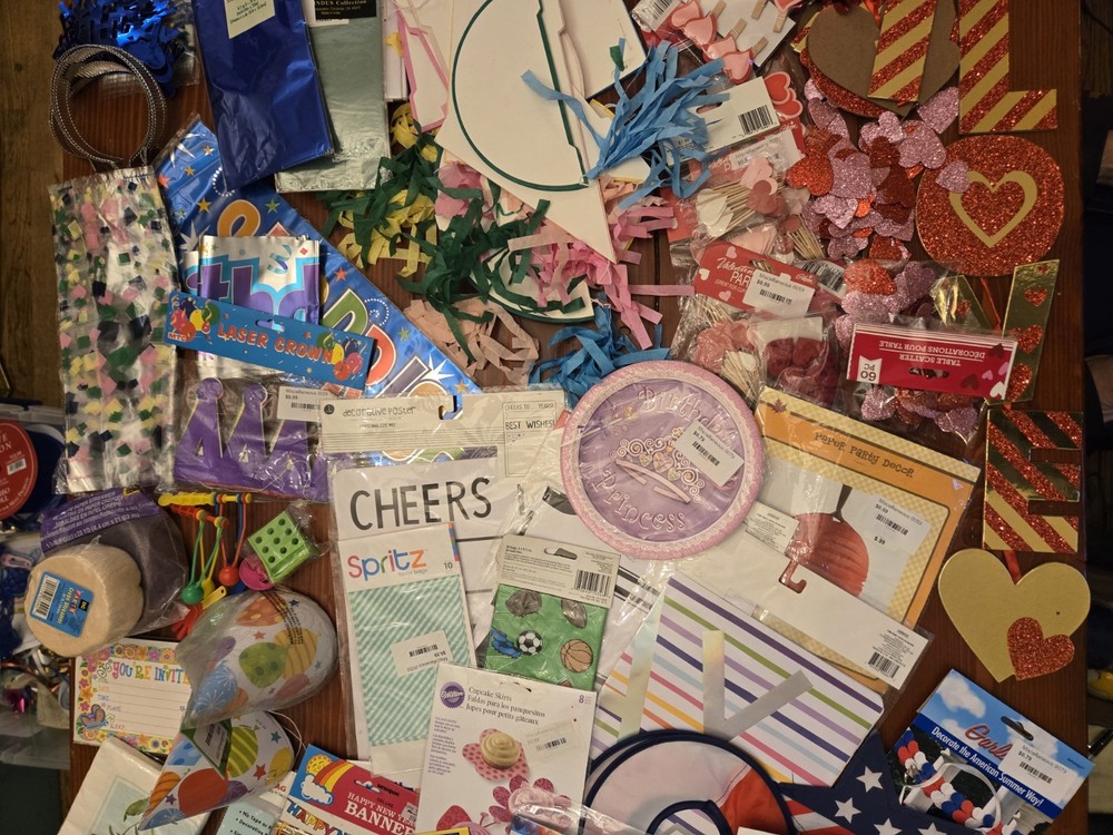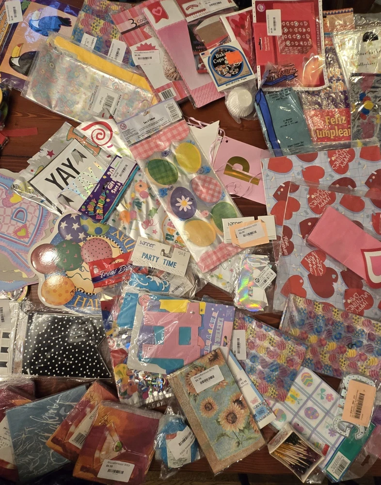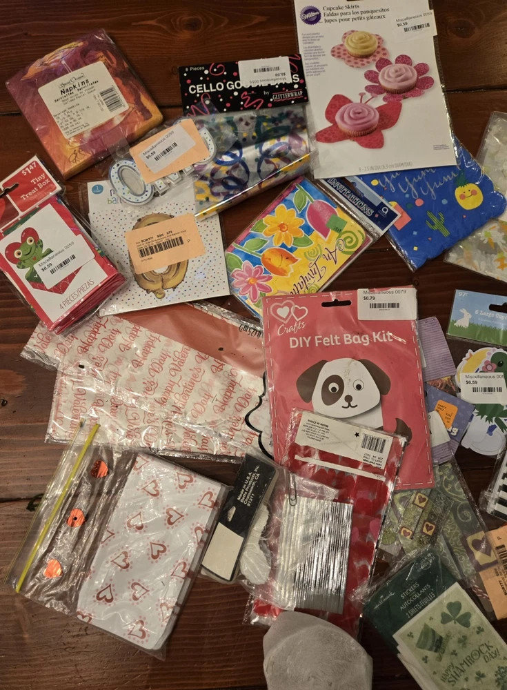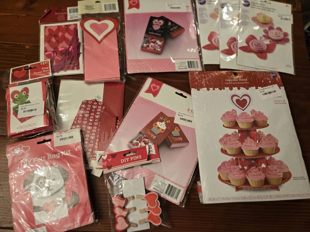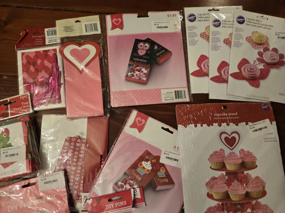 All different types of party supplies for birthdays, Valentine's day, Fiesta parties, Etc. 188 items total! Lots of very cool items like, Baking decorations, gift boxes and displays. Packages that are make your own invitations. All new and most in their original packages, except for the honeycomb decorations, they were used once. But I didn't feel like I should throw them away Because they were still in good condition. There's a few banners that are out of their packages. To tell you the truth, I'm not sure why, because I don't remember using them. I took lots of pictures so that you can see every item. Please be sure to zoom in and look at everything before you buy. This is a lot of stuff, so the shipping may be high because of the weight. Thank you so much for looking!