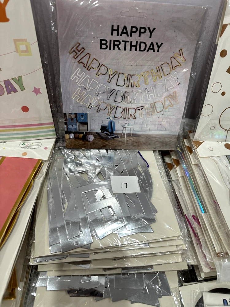 Store Closing Clearance Sales! Total 384 sets of banners, $1 each! Money saver for party supplies business! All banners are brand new, which are great for reselling. The number on the picture indicates the quantity of each banner.