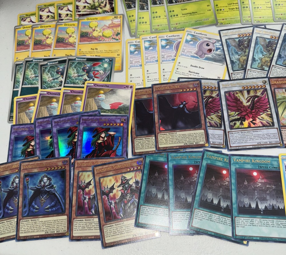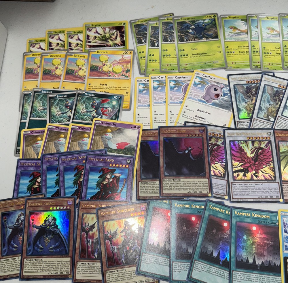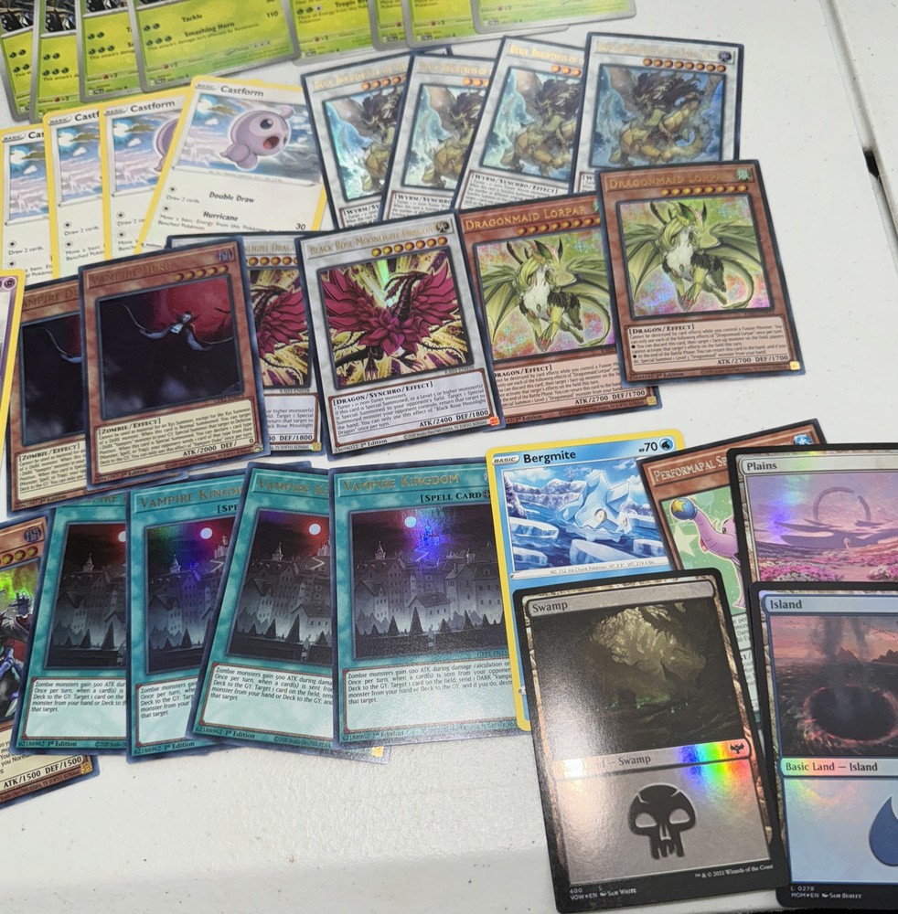 1. Just got this lot and loving it! Tons of awesome holos and cool cards from Pokémon, Yu-Gi-Oh, and MTG—mostly dragons, vamps, and other wicked types. Near-mint condition, great value for the price. Perfect for collectors or players looking to bulk up their decks. Super happy with this grab!