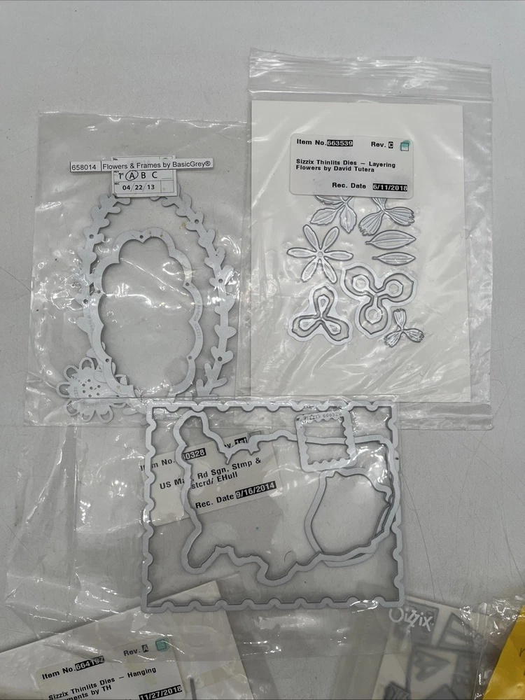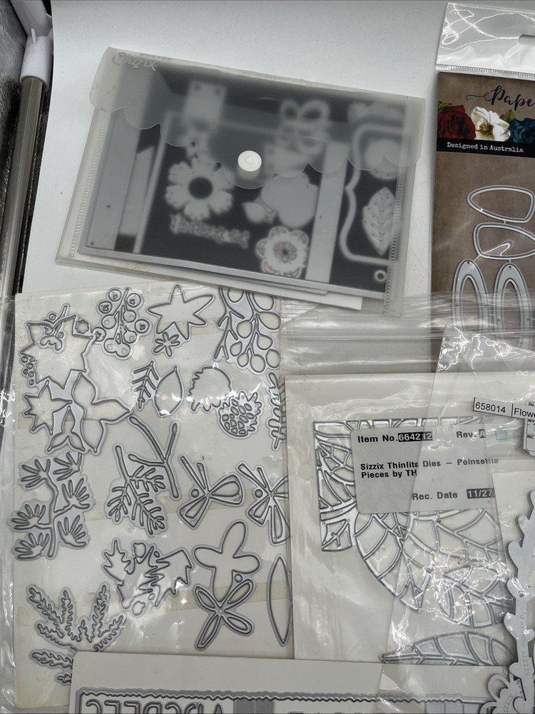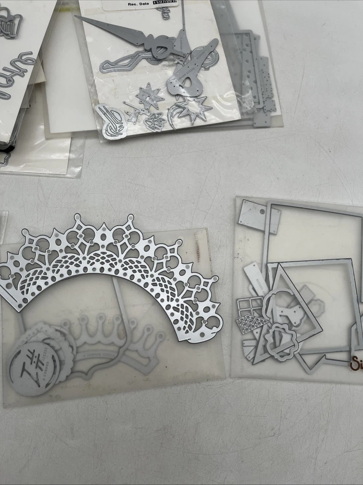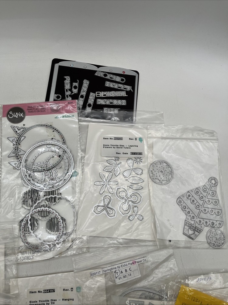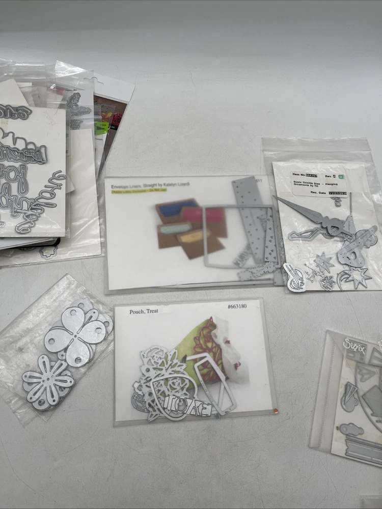 Large mixed lot of metal cutting dies, including Sizzix Thinlits and similar brands. This lot includes a variety of designs such as frames, decorative elements, seasonal shapes, and card-making sets. Several items appear to be new or unused in original packaging. Perfect for: • Scrapbooking • Card making • DIY crafts • Paper projects Condition: Mixed condition – includes both new (in packaging) and pre-owned dies with normal signs of use. Some sets may be incomplete. sizzix thinlits lot, cutting dies bundle, scrapbooking dies, card making supplies, metal dies bulk, craft dies lot