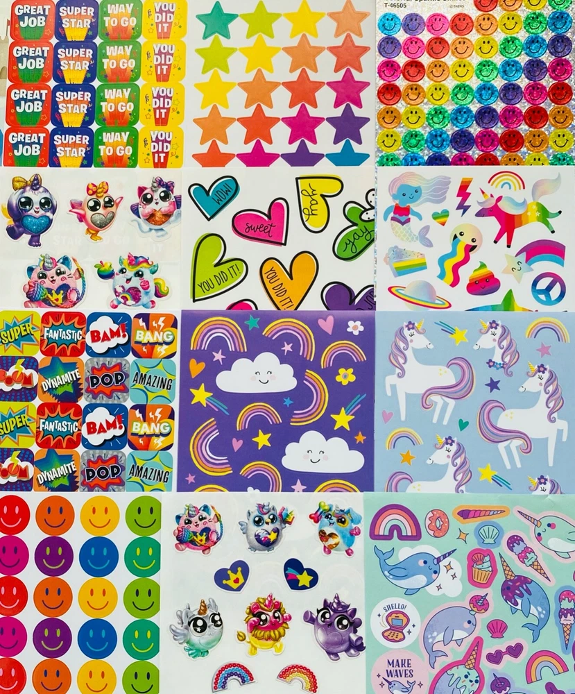 All stickers are BRAND NEW | Still in their original packaging! Mixed Sticker Lot | The Ultimate Kit | Qty. 500+ Stickers | High Quality Only! Fun Assortment of Puffy, Scrapbook, Cartoons, Bubble, Pop Up Stickers Packs For Everyone! You will receive 27+ Sticker Sheets of beautiful colorful assortment. I have included a large variety of pictures of the assortment available. The pictures give you an idea of what you will be receiving. Please Note: You will not receive everything pictured. Please contact me with any special requests. This HUGE Variety of fun designs stickers can be used in parties, classroom, school and home, good for reward for students, potty training, adding inside a birthday card, game activities, entertaining toddlers, etc. Perfect Gifts for Kids & all Occasions: Can be given as a gift for kids, girls, boys, toddlers, teens, students, friends, and classmates, they will love it! Each package of stickers is a different style & theme with some lovely embellishments like rhinestones, ribbons, buttons and other 3D details that make these quality stickers look so unique!