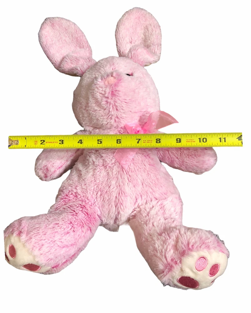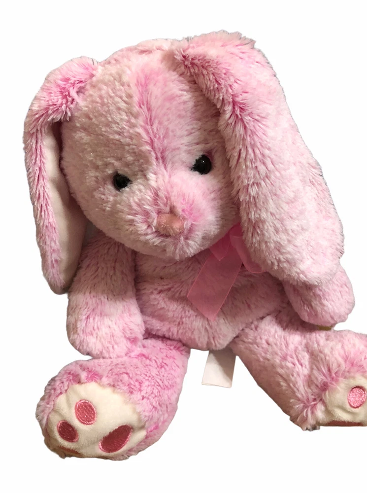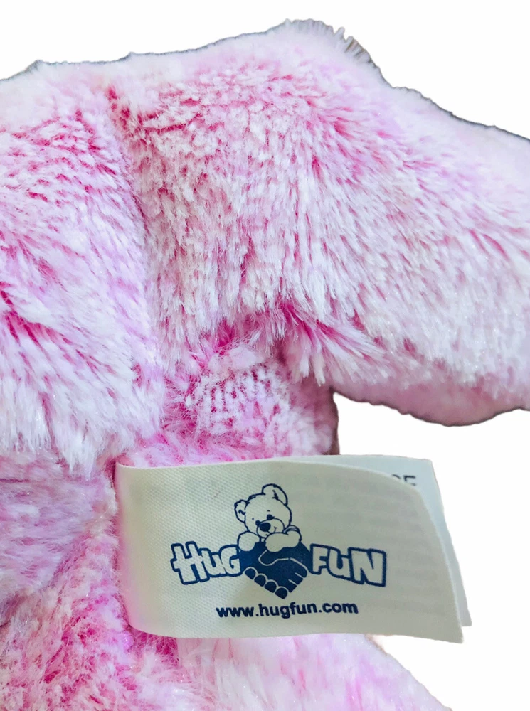 Hugfun pink soft bunny with floppy ears and pink bow- used good condition. Item will ship via USPS Ground Advantage Mail.