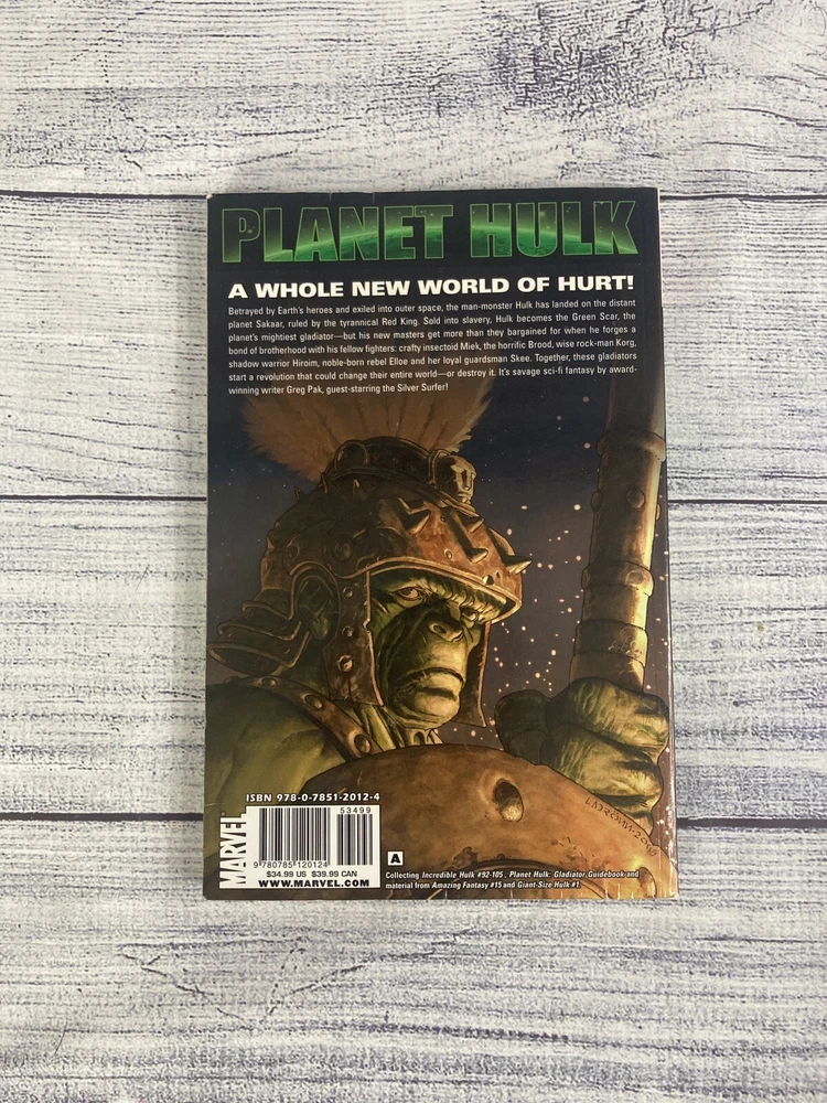 Gently Used, remains in clean condition, all pages & cover are intact, spine/cover may show minimal signs of wear. No highlighting, marks or writing. Hulk: Planet Hulk (Marvel, April 2008).