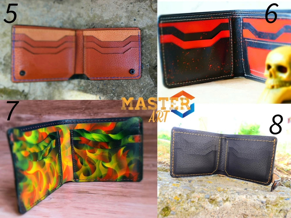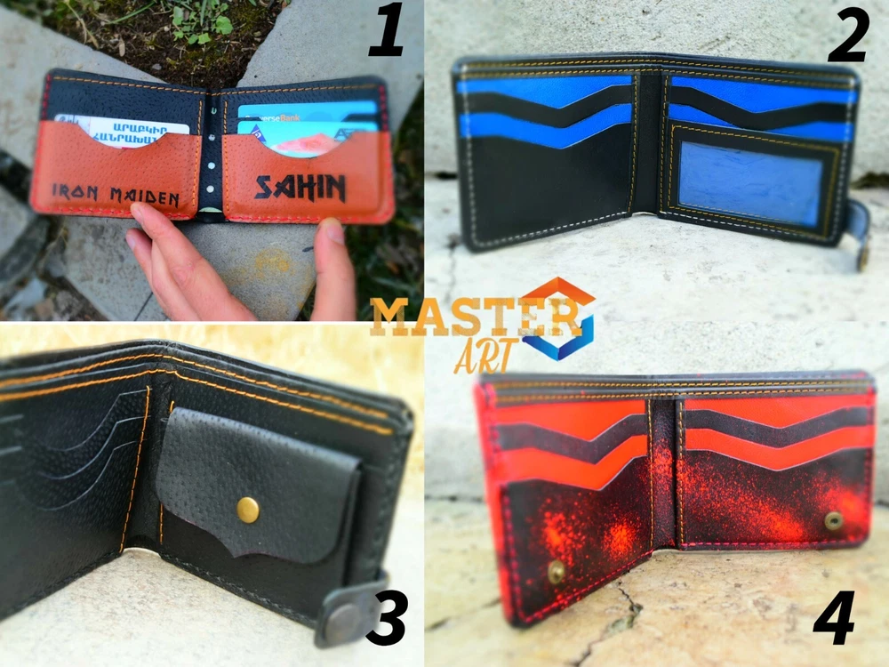 Our wallets are made out of high quality genuine leather. Our products are carefully constructed by hand, so special attention is paid to each stage of the manufacturing process. The edges are hand smoothed, rounded polished and painted. The inside is made of high quality genuine pigskin. Inside a roomy compartment for bills, several pockets for cards, a large horizontal pocket and a compartment for coins with a snap. It is very beautiful, practical, durable and convenient wallet which will delight you for many years or your friend if you decide to make a present. We accept personal orders, your initials can be hand-painted on the wallet. We can do wallets according to your own style and color. We accept personal orders, your initials can be hand-painted on the wallet . Length - 11,5 cm (4,5 inches) Width - 9,5 cm (3,7 inches) Thickness - 1 cm (0,4 inches) Material - High quality veg tanned and other leather, waxed and other threads You can choose the inner color of the wallet between of these varieties. 1. Black 2. Black and Brown 3. Brown 4. Black and Red 5. Black and Blue We have two options for the inside of the wallet. The first version with a coin pocket, the second without a pocket for coins. You can choose. And you can choose an option to close your wallet with or without a snap and also with loop for chain (with or without chain) and without these things. All these details can be finalized after your order via eBay messages. Shipping: The order will be ready during 3 days after completing the purchase. You receive the items within 3-5 weeks in average. Time may vary little bit based on delivery location. The item will be shipped by Haypost Registered Airmail with Tracking Number. If you have any question then please email us. Thanks for your visit in our shop. And please leave us your feedback and review on eBay, as it is very important for us. Best regards: Master Art Handmade.
