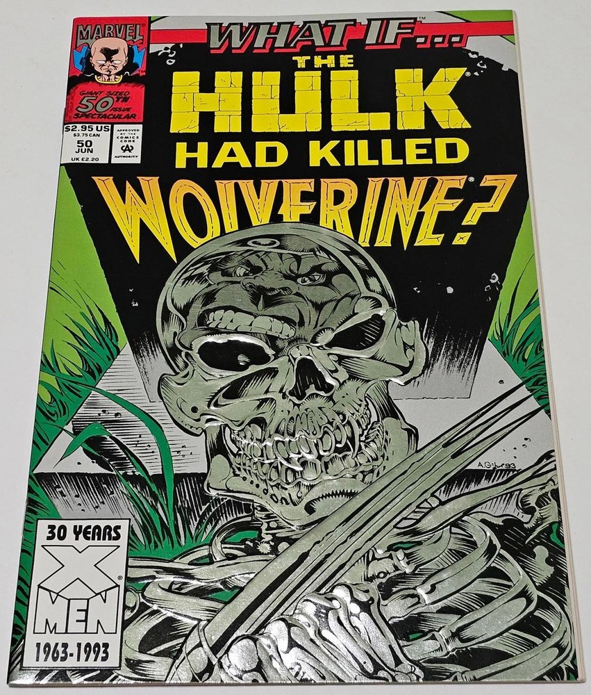 What If 50 What If The Hulk Had Killed Wolverine? 1993 Marvel Embossed Cover This special issue has a cardstock cover that is both embossed, and foil enhanced, giving it a 3D effect. Excellent condition. Check out the photos for condition details.