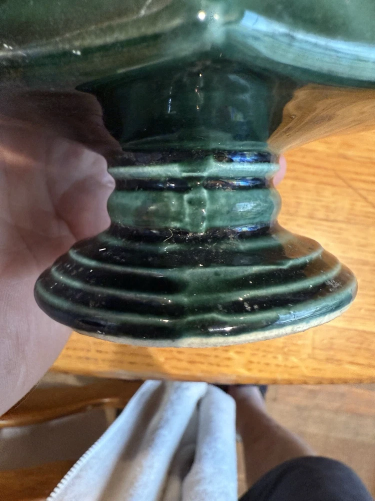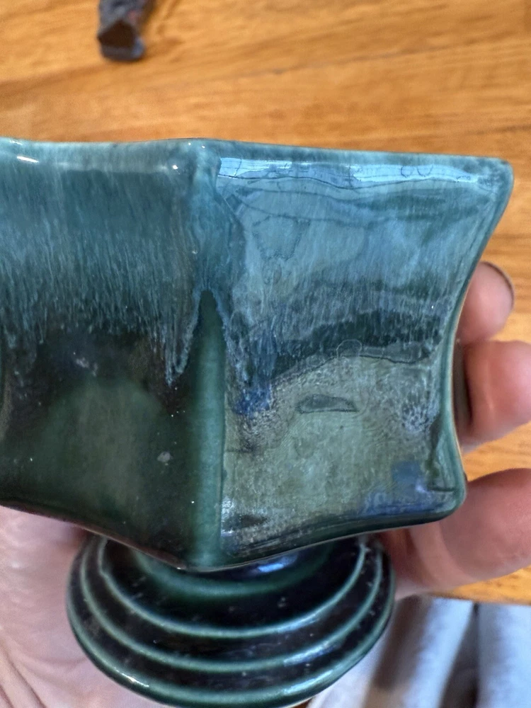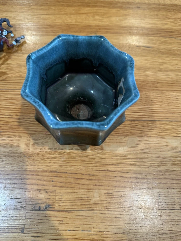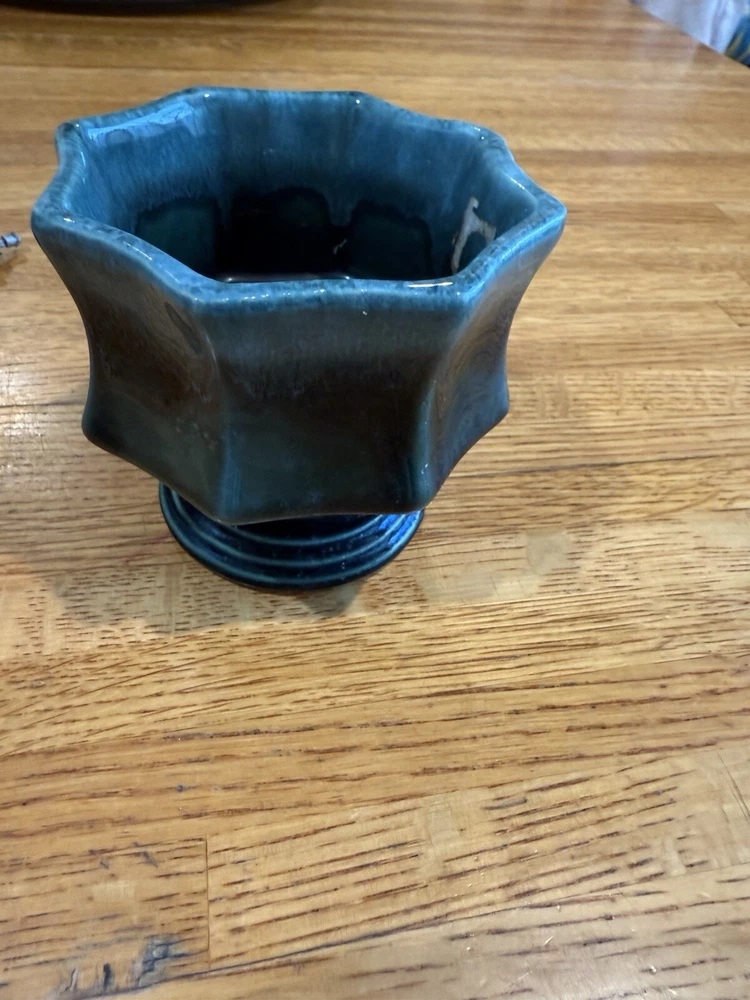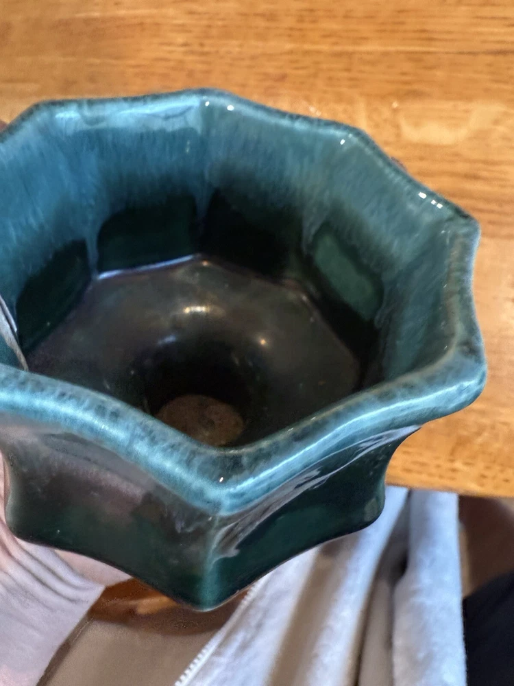 Hull Footed Octagon Planter F3 USA Green Drip Glaze Iridescent 3.5” Tall Vintage