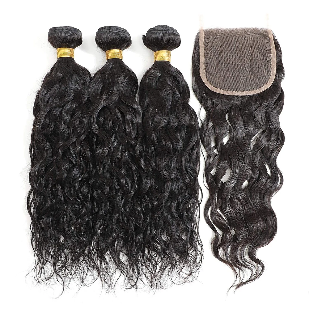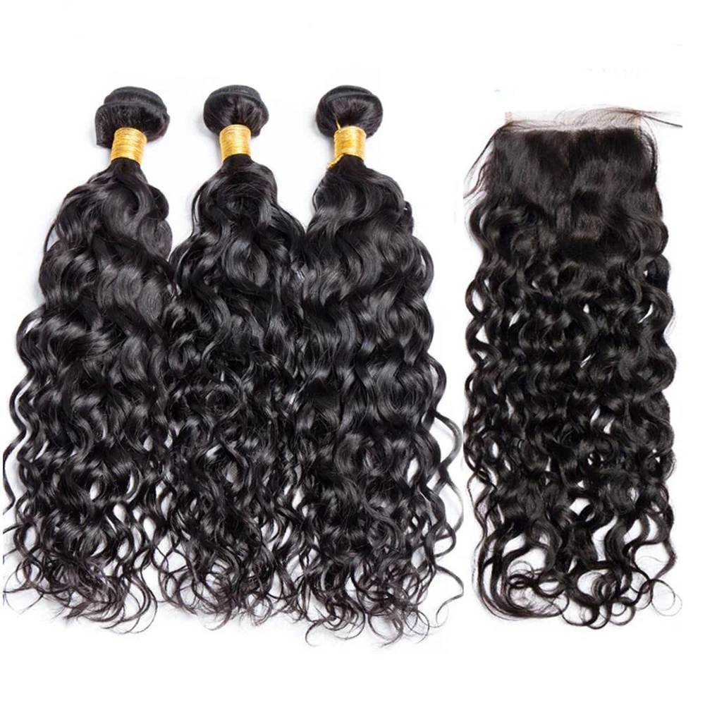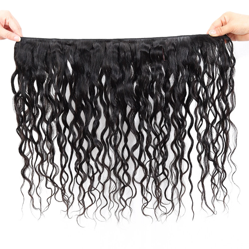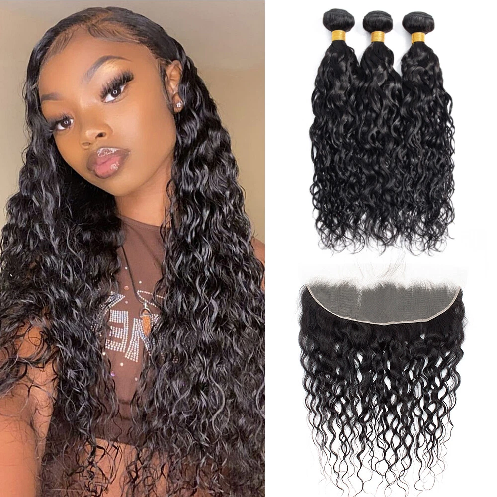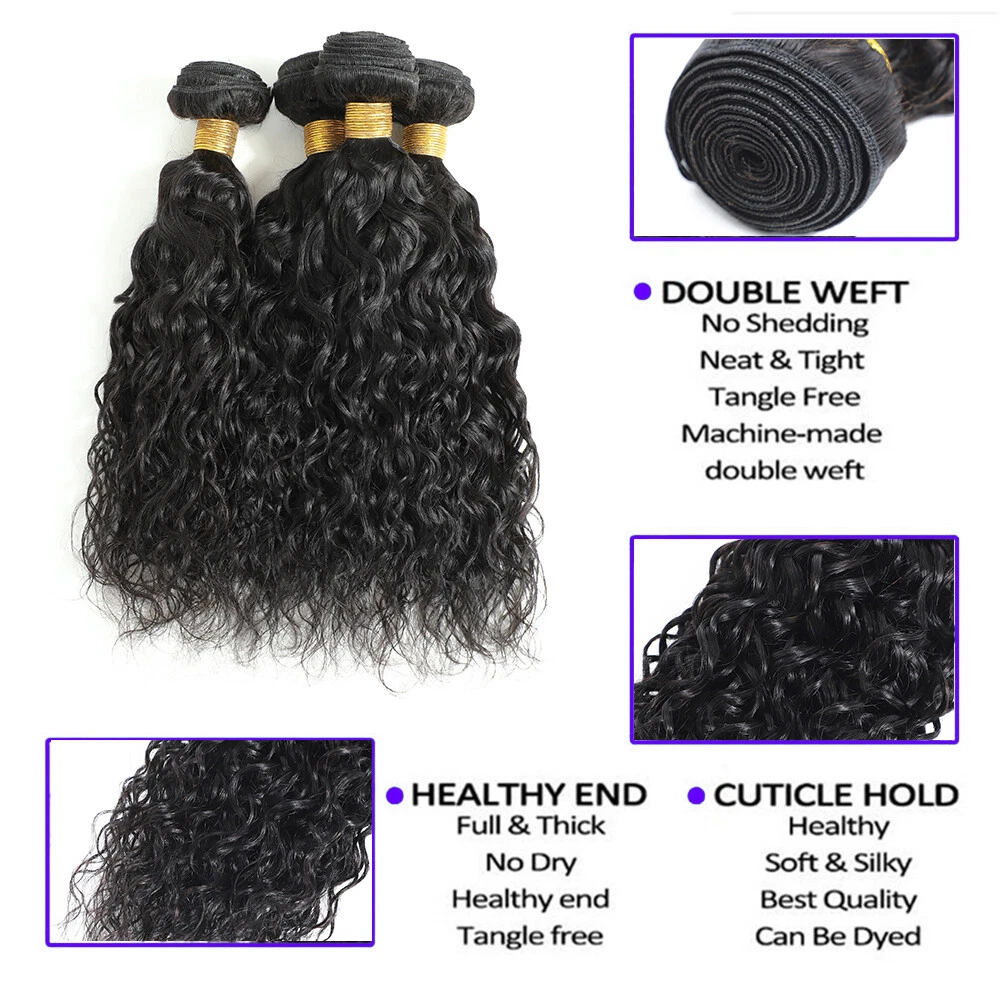 Human Hair Bundles with Lace Closure Water Wave Bundles with Lace Frontal Hair Hair Material: 100% Brazilian Virgin Human Hair Hair Grade: 10A Hair Color: Natural Black, Can be dyed at any color you like Hair Bundles Length: 12" 14" 16" 18" 20" 22" 24" 26" 28"inches Hair Bundles Weight: 100g per bundle, 100g=1Bundle 3 00g=3Bundles Hair 4*4 Closure Length: 12" 14" 16" 18" 20" inches Hair 4*4 Closure Weight: 45-55g/piece Hair 13*4 Frontal Length: 12" 14" 16" 18" 20" 22" inches Hair 13*4 Frontal Weight: 50-75g/piece Handling Time: No more than 2 Business Day. Delivery Time: It usually takes 2 -5working days to be delivered by USPS FREE SHIPPING Refund Policy: 30 days no reason to return Hair Feature: 1. 100% Real Human Hair extensions 2. Soft and Thick, Smooth, Full Cuticle 3. Natural Hair, No Shedding, No Tangle, Machine Double Weft Q: Why are my hair extensions getting tangled? A: Your hair extension tangle due to dryness, oil&dirt built-up, salt water, chlorine and not combing(wide tooth comb) out hair daily. Make sure to wash&Condition your hair at least once a week,twice a week is better. Use olive oil to moisten it smoothly or consult your stylist for more help. Q: Can I dye the hair? What should I can pay attention to? A: Treat the hair as if it is your own. Use a flat iron/ straightener or tongs, even when fitted, but as with your own hair, never use hot tools too often as you could dry the hair and it will not last as long. Q: How to tell human hair with synthetic hair? A: human hair has natural protein . It is easy to tell by burning and smell: human hair will be ash , which will go away after pinching. human hair will smell foul . When burning , the human hair will show white smoke. While synthetic hair will be a sticky ball after burning and will show black smoke . Moreover, human hair may have very few gray hair and split end. It is normal and not a quality problem. Q. Can I dye /color the hair? A: Yes. The hair can be colored. As a general rule it is easier to darken the hair than to lighten the hair. We recommend to dye darker , not lighter since the hair extension has been processed and colored, it is difficulty to fade the original color. Improper dying will ruin the hair. We highly recommend having your hairdresser dye the extensions as you will get the results you want, coloring them yourself always poses a high risk of not coming out the shade you want. If you can't get to a salon, always use a good quality hair dye and test a small sample first. Virgin hair is not processed chemically and it keeps cuticle intact. you can dye it any color, either darker or lighter. Q. Can I wash & blow-dry the hair extensions? A: You can wash them as you would your own. Shampoo and conditioner. We also recommend using a hair treatment on them every few weeks, because the hair is not attached to your scalp, it is not getting the oils it should be. Using a treatment/hair mask will help keep them looking healthier and shiny for longer! You will find that you don't need to wash your extensions too much, about every 3 weeks. The extensions can be blow-dryed on low setting, but it is not recommended to do it too often. It is best to let your hair extensions dry naturally after washing them. please comb from bottom to top.