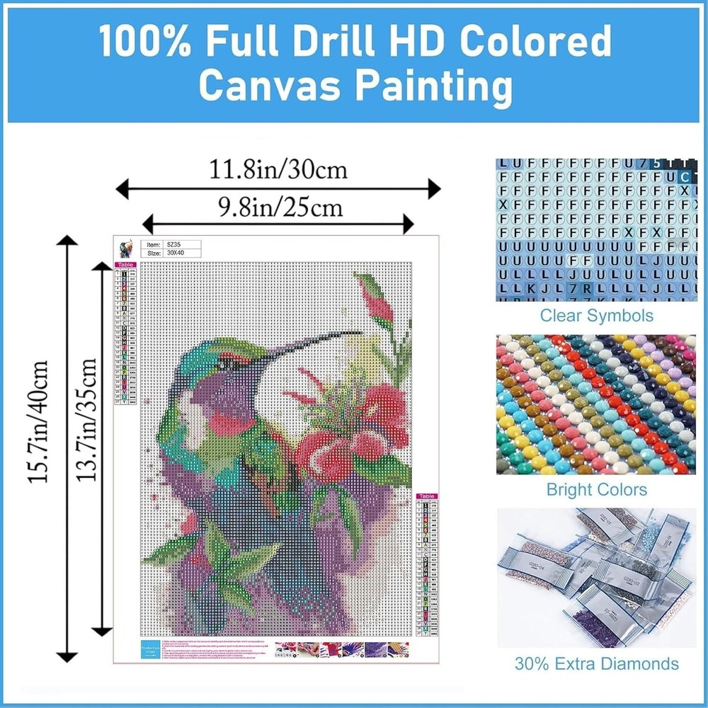 Hummingbird Diamond Painting Kits for Adults-Bird Diamond Art Kits for Adults... About this item 【Funny diy hummingbird diamond art painting】You just follow the numbering instructions on the canvas and stick the rhinestones directly to complete a painting. 【High-quality materials】Bird diamond painting kits use high-quality pure natural resin materials.The printing oil canvas is high clear printing,the symbols is easy to read.The pattern itself has a hot melt adhesive background and plastic protective film so the diamonds won't fall down once they're pressed onto the canvas.It is light in texture,moderate in brightness,rich in color. 【Bird diamond art kits-Full of fun】Handmade diamond painting can enrich your leisure time and help to reduce stress.You get a piece of artwork when you're done with it,and simply hung it onto the wall,it will make your room and your world more beautiful. 【Hummingbird gem art-Ideal gift】Hummingbird diamond painting also a perfect for gift your family,friends and coworkers,New Year gifts,Christmas gifts,birthday gifts and various holidays as gifts,also a great thing helps to relieve stress,enjoy your slow time,its fun hobby and it helps get rid of stress.
