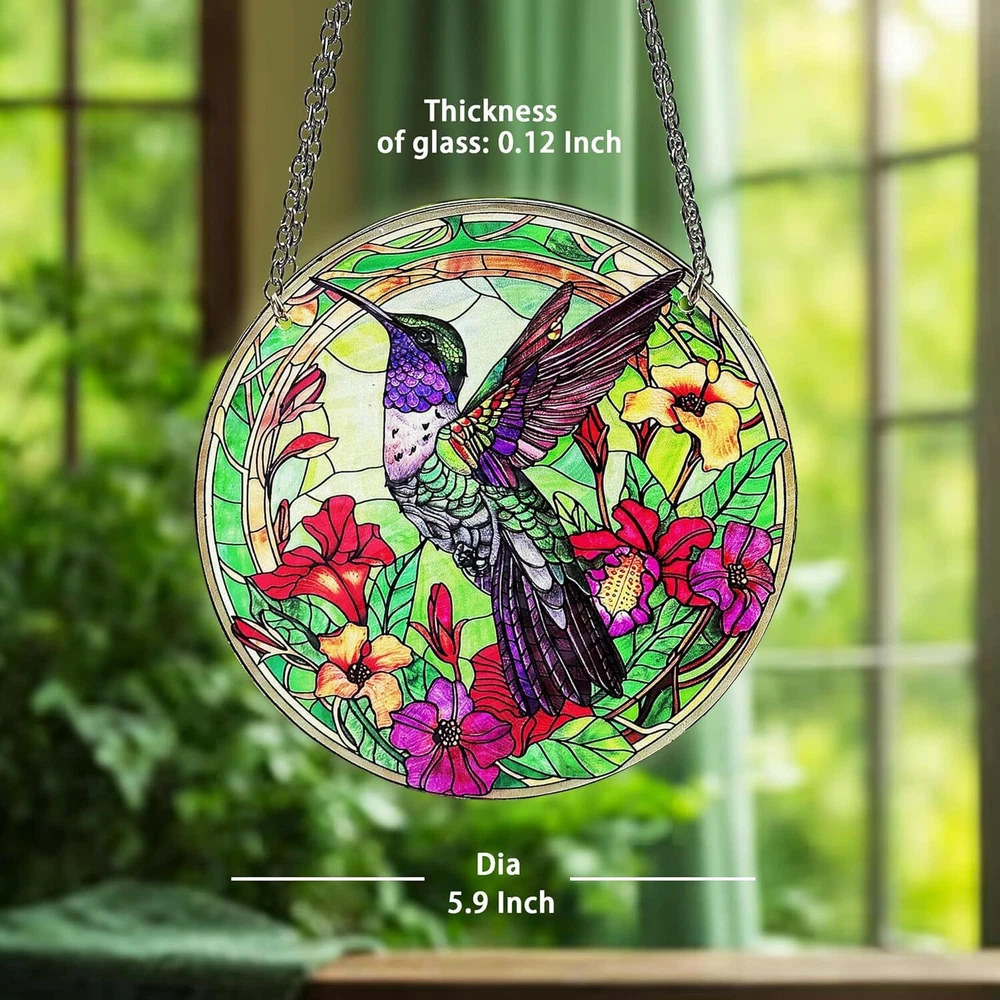 Hummingbird Stained Glass Decor for Women, Panel Purple and Green Product Details Product Dimensions: 6 x 6 x 0.1 inches Item Weight: 3.2 ounces Manufacturer: BXLZ Country of Origin: China Item model number: Sunca002 Hummingbird Stained Glass Decor Ornament: Stained Glass hummingbird Stained Glass Decor for Windows - Featuring designs that symbolize Happiness, Vitality,Inspiration and Creativity making these suncatchers meaningful gifts. Artisan Quality & Lifelike Charm- Crafted from genuine glass ( Not Acrylic or Plastic) with intricate details and vibrant colors, they add brilliance to any space, feel the textured surface and detailed images, bringing a touch of nature into your home. Easy Hanging & Packaging - Each 6 inch Stained Glass Decor includes an upgraded a suction cup and chain for effortless placement on windows, both indoors and out. Hummingbird Versatile Ornaments Decor - Enhance your space with the beauty of these purplish green hummingbird Stained Glass Decor for gardens, patios, balconies, window, hallway, entertainment venue and more. Hummingbird Gifts: The hummingbird birthday, new home, anniversary, christmas,thanksgiving gifts for bird lovers, family,women,man,friends,sister Post-sales care for our Suncatchers:Benefit from efficient query resolutions, hassle-free returns, and personalized support. We are committed to ensuring your satisfaction, providing a delightful shopping journey from purchase to post-purchase support.