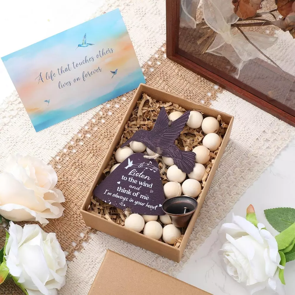 Hummingbird Wind Chimes for Loss of Loved One Sympathy Memorial Gift Bereavement Condolence Remembrance Windchimes for Mother Father Garden Patio Porch Window Funeral Hanging Ornament Decor Please note- This listing is not applicable for additional personalization on the wind sail. Complete Memorial Gift with Additional Items: each package includes a hummingbird wind chime, a pack of raffia, and a sympathy card; These items not only offer quality but also considerately takes care of all the necessary details, making it a thorough and meaningful memorial wind chimes gift, a thoughtful expression of support for a friend or loved one in need Unique Hummingbird and Exquisite Material: the sympathy gift boasts the unique hummingbird design, beautifully symbolizing strength, hope and comfort, featuring the hummingbird charm and pendant with meaningful words; Crafted from durable metal, the hummingbird wind chime is an ideal outdoor decoration that can stand up to the elements; This quality material ensures that the charm of the hummingbird windchimes does not wither, making it a lasting bereavement gift to remember the dear departed by Exquisite Sympathy Card for Personalization: our bereavement gifts include a card made of 300g coated paper, about 5.91 x 3.94 inches in size; It comes with moving words, calming patterns, and a blank back for you to add a personalized message; Coupled with the hummingbird windchimes, they create a heartfelt packaged gift to pass on sympathetic messages Relaxing Melody and Classic Colors: the hummingbird wind chimes for loss of loved one produce soothing and relaxing melodies, which offer solace and tranquility; In a classic color that complements any decoration style, these memorial wind chimes are not only a beautiful keepsake but also a captivating decor piece that can be placed anywhere, such as garden, patio, porch, window and more Versatile Usage and Meaningful Gift: our sympathy gifts can be applied in various ways; They can serve as a beautiful decor element, as a soothing, musical windchime under the soft breeze, or as a meaningful gift for your close people, sympathetically communicating your condolences, heartfelt expression of support and kindness Features:The memorial windchimes for loss of loved one serve as a beautiful boho decoration, fitting seamlessly with any aesthetics. With its unique design and classic color, it creates an atmosphere of charm and elegance, enhancing the beauty of any living space.Our bereavement gifts go beyond being just keepsakes. Measuring about 30.3 inches, with the hummingbird of about 2.68 inches, the pendant of about 2.76 inches, this hummingbird wind chime for loss of a loved one is designed to comfort those who are grieving.Specifications:Material:Hummingbird wind chimes: metalSympathy card: 300g coated paperColor: classic colorSize:Hummingbird wind chimes: about 30.3 inches/ 77 cmPendant: about 2.76 inches/ 7 cmHummingbird: about 2.68 inches/ 6.8 cmSympathy card: about 5.91 x 3.94 inches/ 15 x 10 cmPackage includes:1 x Hummingbird wind chimes1 x Raffia1 x Sympathy card Hummingbird Wind Chimes for Loss of Loved One Sympathy Memorial Gift Bereavement Condolence Remembrance Windchimes for Mother Father Garden Patio Porch Window Funeral Hanging Ornament Decor Please note- This listing is not applicable for additional personalization on the wind sail. Complete Memorial Gift with Additional Items: each package includes a hummingbird wind chime, a pack of raffia, and a sympathy card; These items not only offer quality but also considerately takes care of all the necessary details, making it a thorough and meaningful memorial wind chimes gift, a thoughtful expression of support for a friend or loved one in need Unique Hummingbird and Exquisite Material: the sympathy gift boasts the unique hummingbird design, beautifully symbolizing strength, hope and comfort, featuring the hummingbird charm and pendant with meaningful words; Crafted from durable metal, the hummingbird wind chime is an ideal outdoor decoration that can stand up to the elements; This quality material ensures that the charm of the hummingbird windchimes does not wither, making it a lasting bereavement gift to remember the dear departed by Exquisite Sympathy Card for Personalization: our bereavement gifts include a card made of 300g coated paper, about 5.91 x 3.94 inches in size; It comes with moving words, calming patterns, and a blank back for you to add a personalized message; Coupled with the hummingbird windchimes, they create a heartfelt packaged gift to pass on sympathetic messages Relaxing Melody and Classic Colors: the hummingbird wind chimes for loss of loved one produce soothing and relaxing melodies, which offer solace and tranquility; In a classic color that complements any decoration style, these memorial wind chimes are not only a beautiful keepsake but also a captivating decor piece that can be placed anywhere, such as garden, patio, porch, window and more Versatile Usage and Meaningful Gift: our sympathy gifts can be applied in various ways; They can serve as a beautiful decor element, as a soothing, musical windchime under the soft breeze, or as a meaningful gift for your close people, sympathetically communicating your condolences, heartfelt expression of support and kindness Features: The memorial windchimes for loss of loved one serve as a beautiful boho decoration, fitting seamlessly with any aesthetics. With its unique design and classic color, it creates an atmosphere of charm and elegance, enhancing the beauty of any living space. Our bereavement gifts go beyond being just keepsakes. Measuring about 30.3 inches, with the hummingbird of about 2.68 inches, the pendant of about 2.76 inches, this hummingbird wind chime for loss of a loved one is designed to comfort those who are grieving. Specifications: Material: Hummingbird wind chimes: metal Sympathy card: 300g coated paper Color: classic color Size: Hummingbird wind chimes: about 30.3