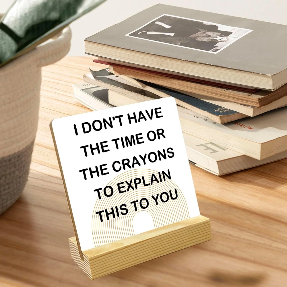 Store New Arrivals Add to Favorite View Feedback Contact Humor Office Decor - Desk Decor for Office Cubicle - Coworker Gifts Office Decor - Nameplates Gift for Boss Leader Manager Description Style I Done't Have Color i don't have the time Country of Origin China Item Weight 1.6 ounces Package Dimensions 4 x 4 x 0.78 inches 『SIZE』 10 x 10 cm/4 x 4 inch square plank and 10 x 4 x 2 cm/4 x 1.5 x 0.79 inch base. It can be inspiring and beautify your environment 『MATERIAL』The material of the wooden sign is made of high-quality wood, polished and printed.It's high quality decoration. 『OCCASIONS』The wooden plaque sign is an delicate ornament for your home, office, bedroom, living room, kitchen, school, dormitory study, bathroom, table, shelf, nightstand and other places. 『EASY ASSEMBLY』Wood plaques are easy to assemble, you just need to push the wooden signs into the slots in the base and you can place them where you want to decorate. 『SPECIAL GIFT』It's very meaningful and warm. Great choice for birthday gifts, office gifts, inspirational gifts, new job gifts for women, men, family, friends, colleagues, employees and more. They are cute and little with meaningful words and sayings. They make a great gift because they can be displayed just about anywhere! Perfect for the desk, shelf or window ledgel! ABOUT US We offer the best prices around on high quality products. Our E-store includes media such as books, movies, music and games while offering electronics, toys, sporting apparel, clothing, tools, general home, garden items and more. SHIPPING We are always working hard to ensure your package arrives as soon as possible. Please understand that some factors like weather, high postal traffic, and the performance of shipping companies are outside of our control. We offer free shipping to the lower 48 states and ship within 2 business days of payment, usually sooner. We do not accept P.O. Boxes. Please provide a physical address. RETURNS We offer a 30-Day Return Policy on items which you are not completely satisfied with. You have the option for a full-refund or an exchange of the item. No returns are available on items shipped outside of the USA. PAYMENT We accept PayPal. CONTACT US This page content is yet to come Please ad us to your favorite seller and visit again later Thank You CUSTOMER SATISFACTION We try our very best to make sure every customer is completely satisfied. If there's a problem, message us! We're happy to help.